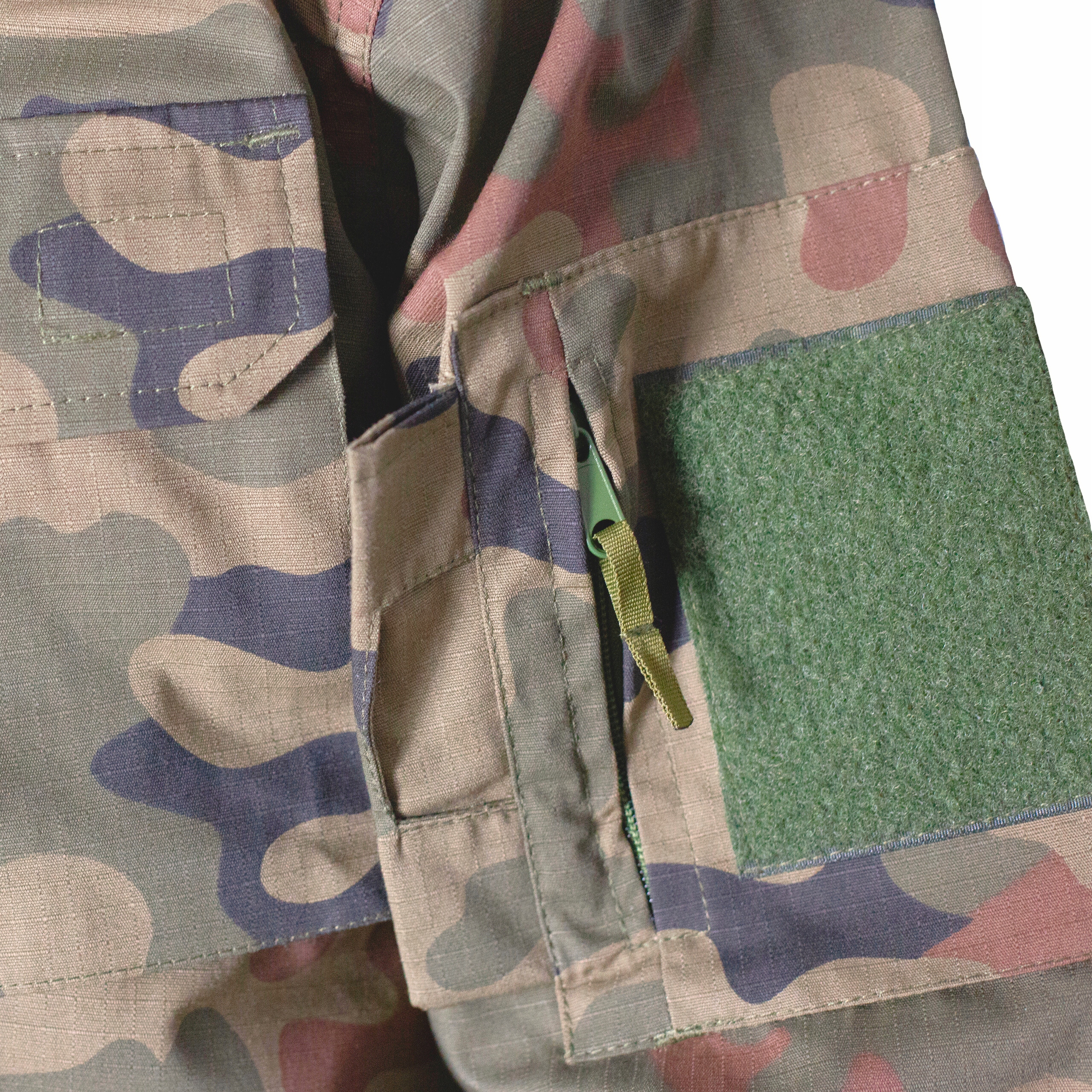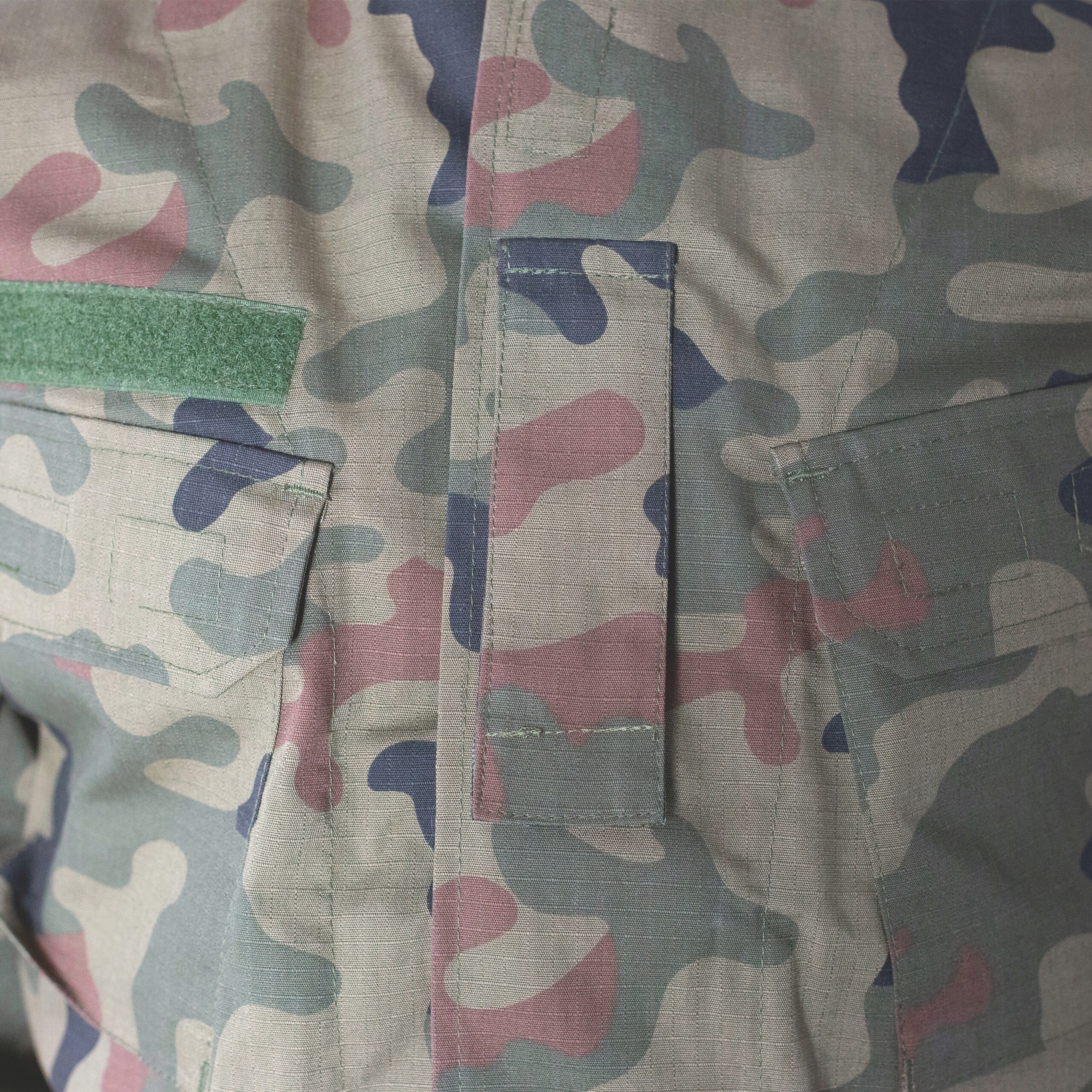 На груди и рукавах пришиты липучки, позволяющие прикрепить любые нашивки или эмблемы, например национальный флаг или эмблему.