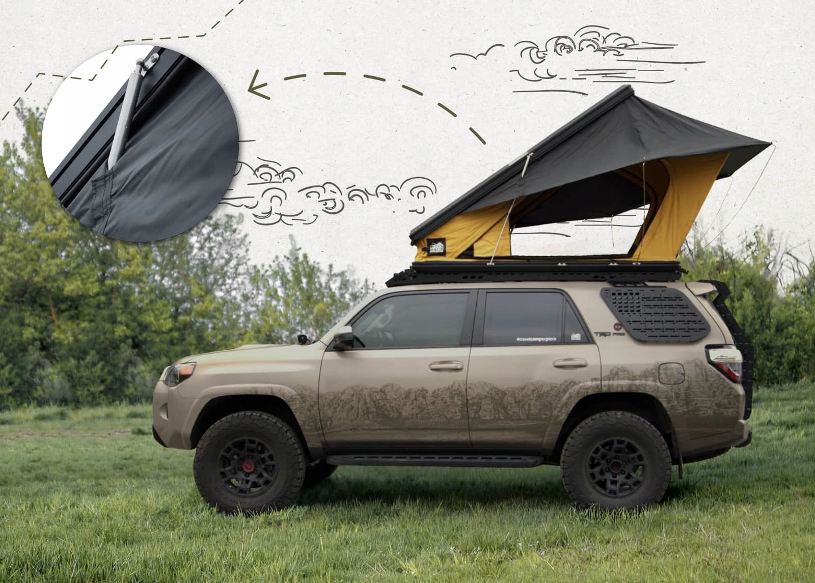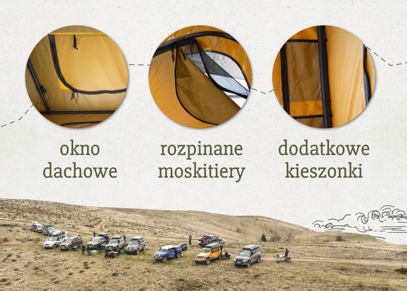 TOMAHAK 2.1 предназначен для более крупных автомобилей, поскольку они предназначены для экспедиций. Идеально подходит для команд из двух человек, которые ценят комфорт, долговечность и качество изготовления. Его твердый чехол выдержит езду по лесам, пустыням и даже снежным бурям. Просто выберите направление путешествия и соберите воспоминания, которые останутся с вами на долгие годы.