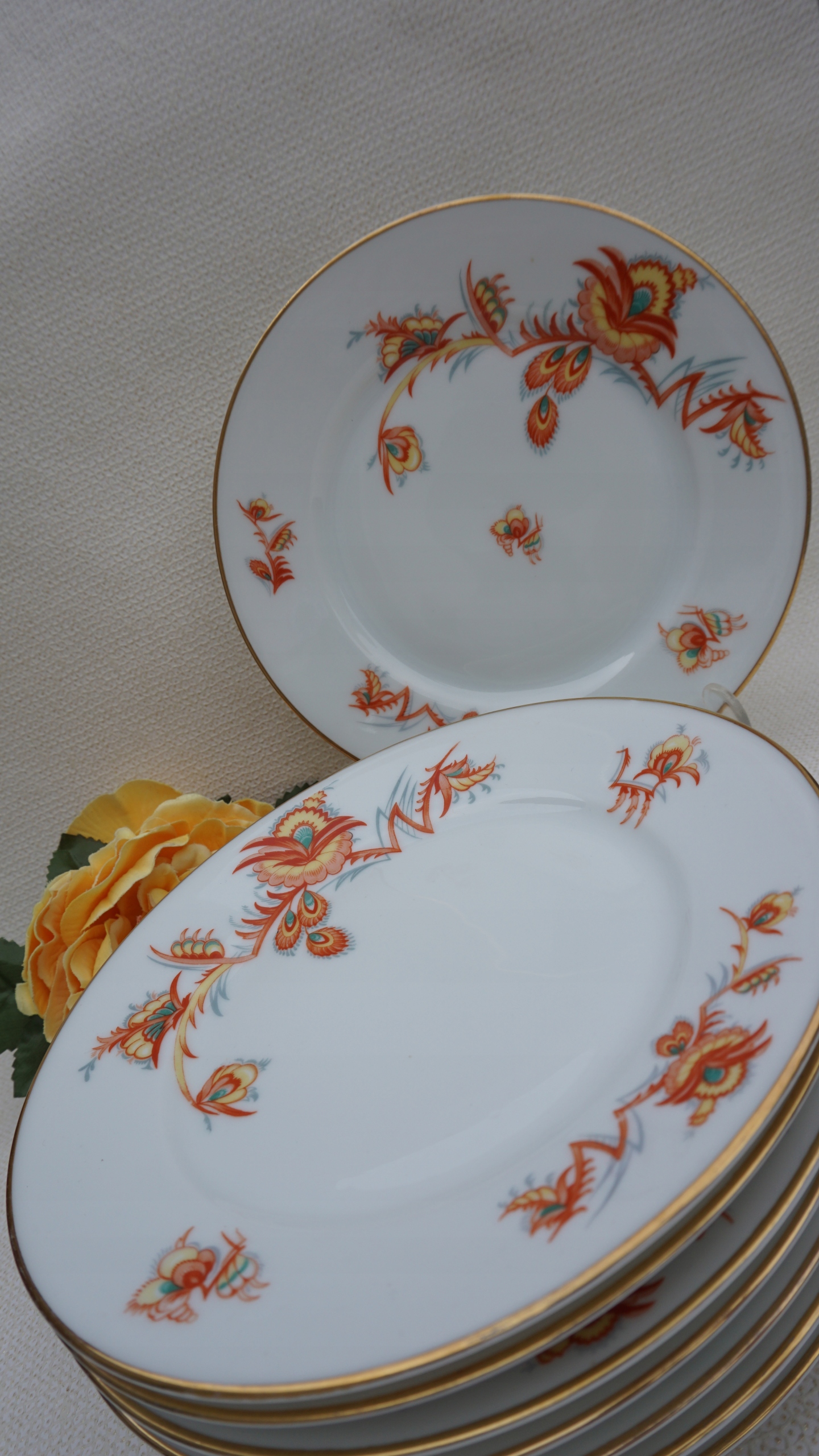 Рекомендую чрезвычайно красивый набор тарелок для завтрака от фабрики Thomas, в настоящее время группы Rosenthal. Блестящий белый фарфор, украшенный чудесным декором в стиле ар-деко.