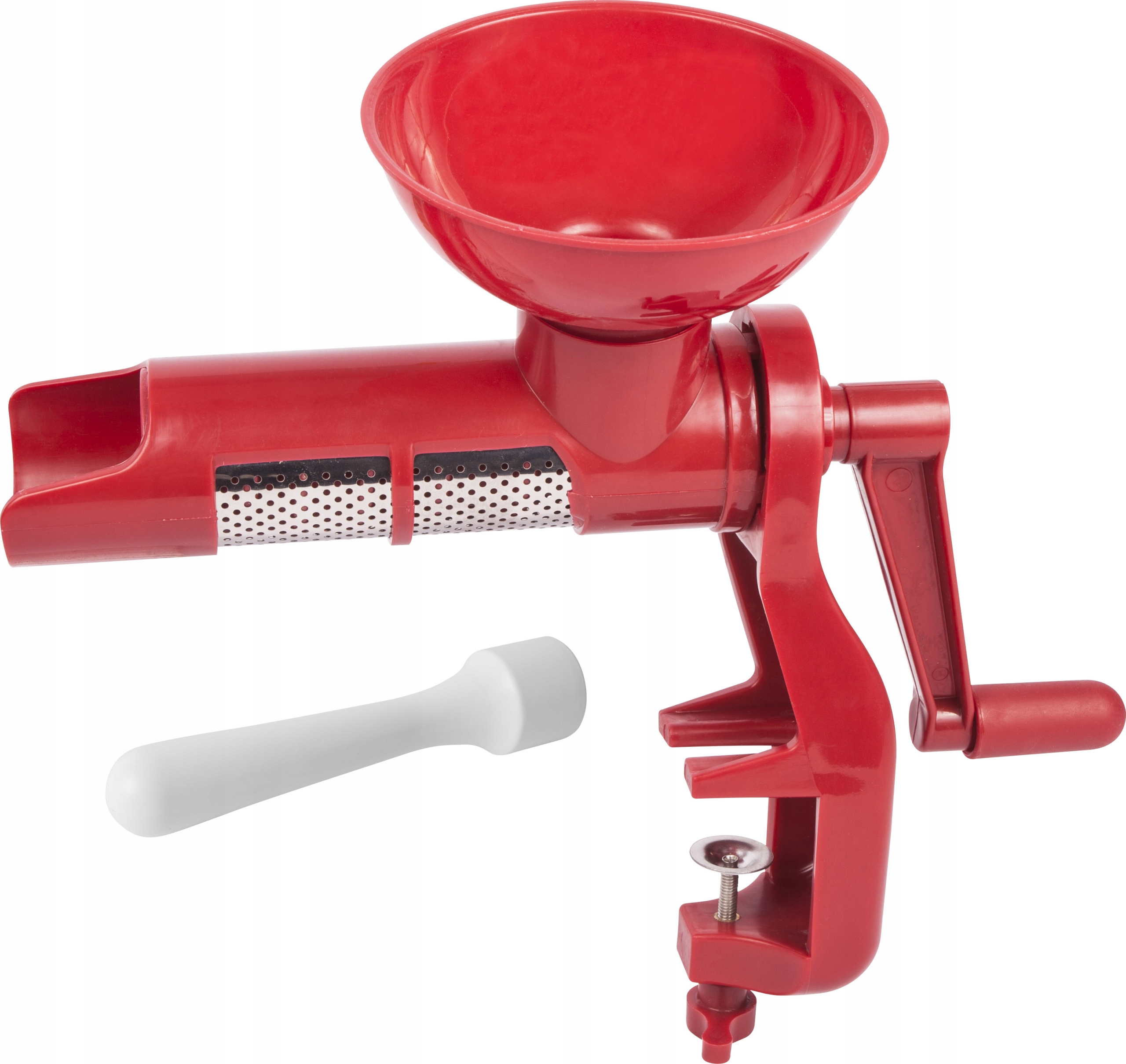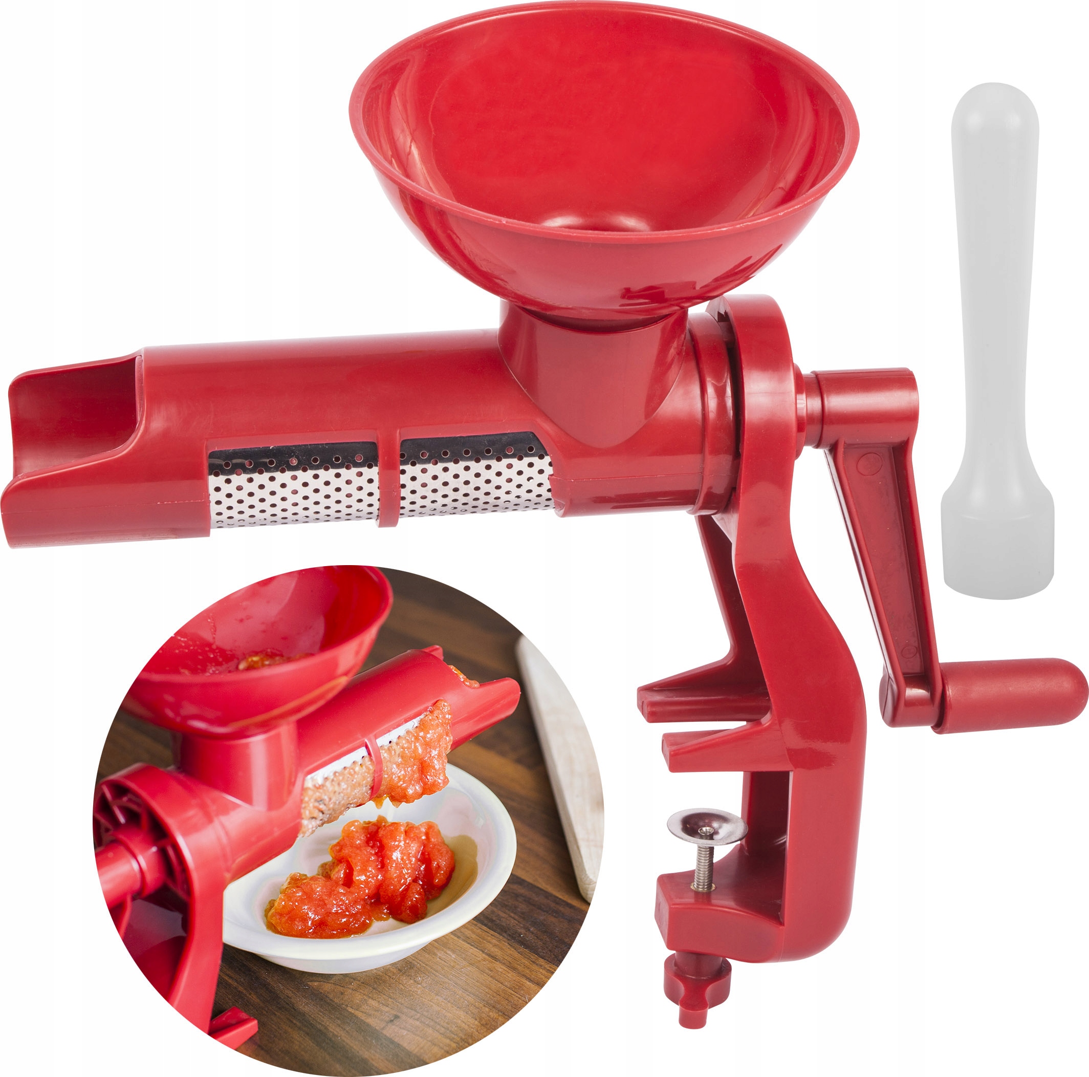 Ручная машина для приготовления томатного пюре, из нержавеющей стали, простая в использовании, красного цвета, для столешниц различной толщины.