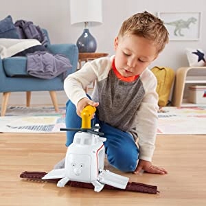 Вертолет Гарольд – один из самых интересных персонажей сказки. Это белый вертолет, работающий в спасательном центре. Игрушка изготовлена из пластика, имеет подвижные пропеллеры и открывающийся ангар. В набор также входят два элемента трека, которые можно комбинировать с другими наборами.