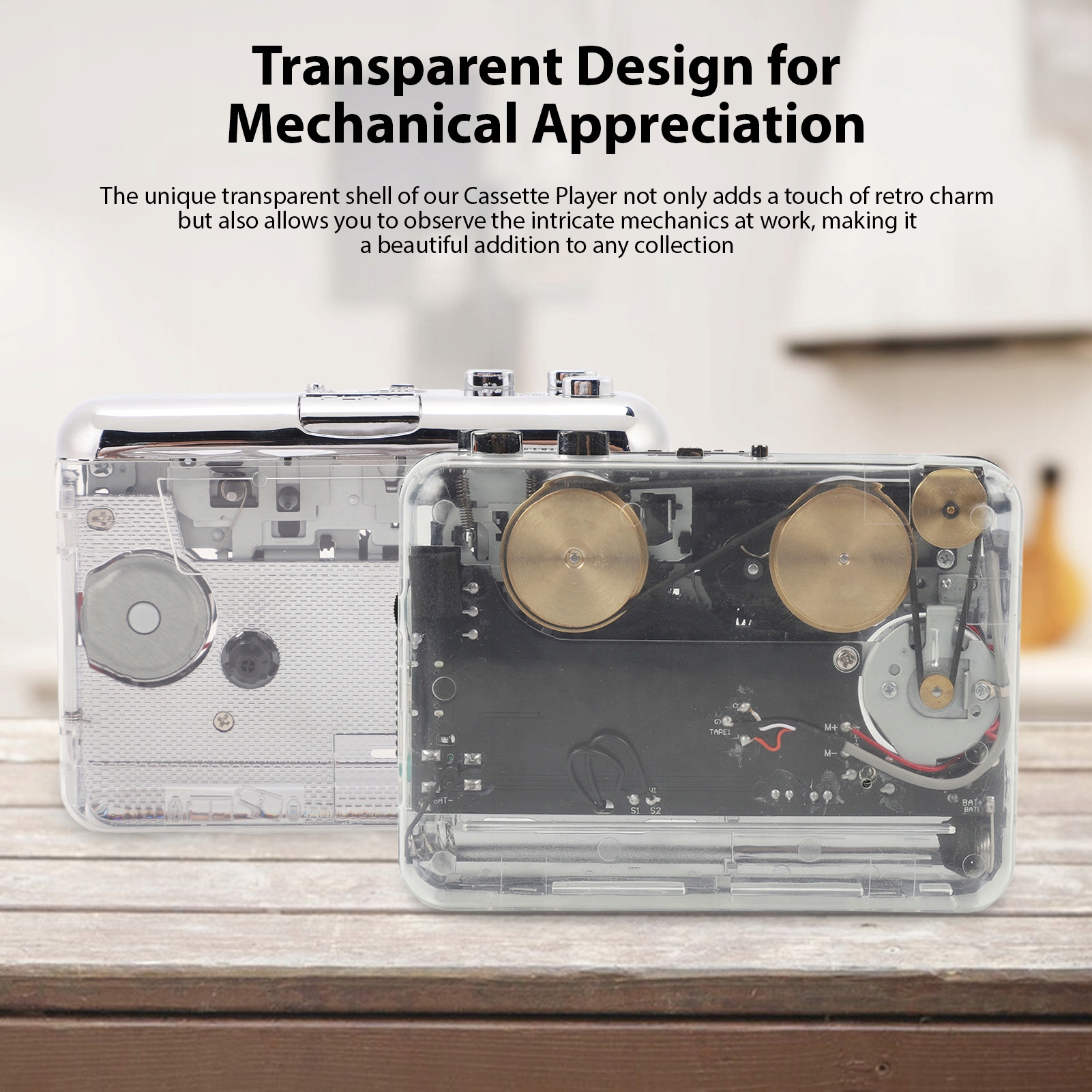 3. Прозрачная конструкция для механического распознавания: уникальная прозрачная оболочка нашего кассетного игрока не только добавляет небольшой ретро -очарование, но также позволяет наблюдать за сложными механиками на работе, что делает его прекрасным дополнением к каждой коллекции.