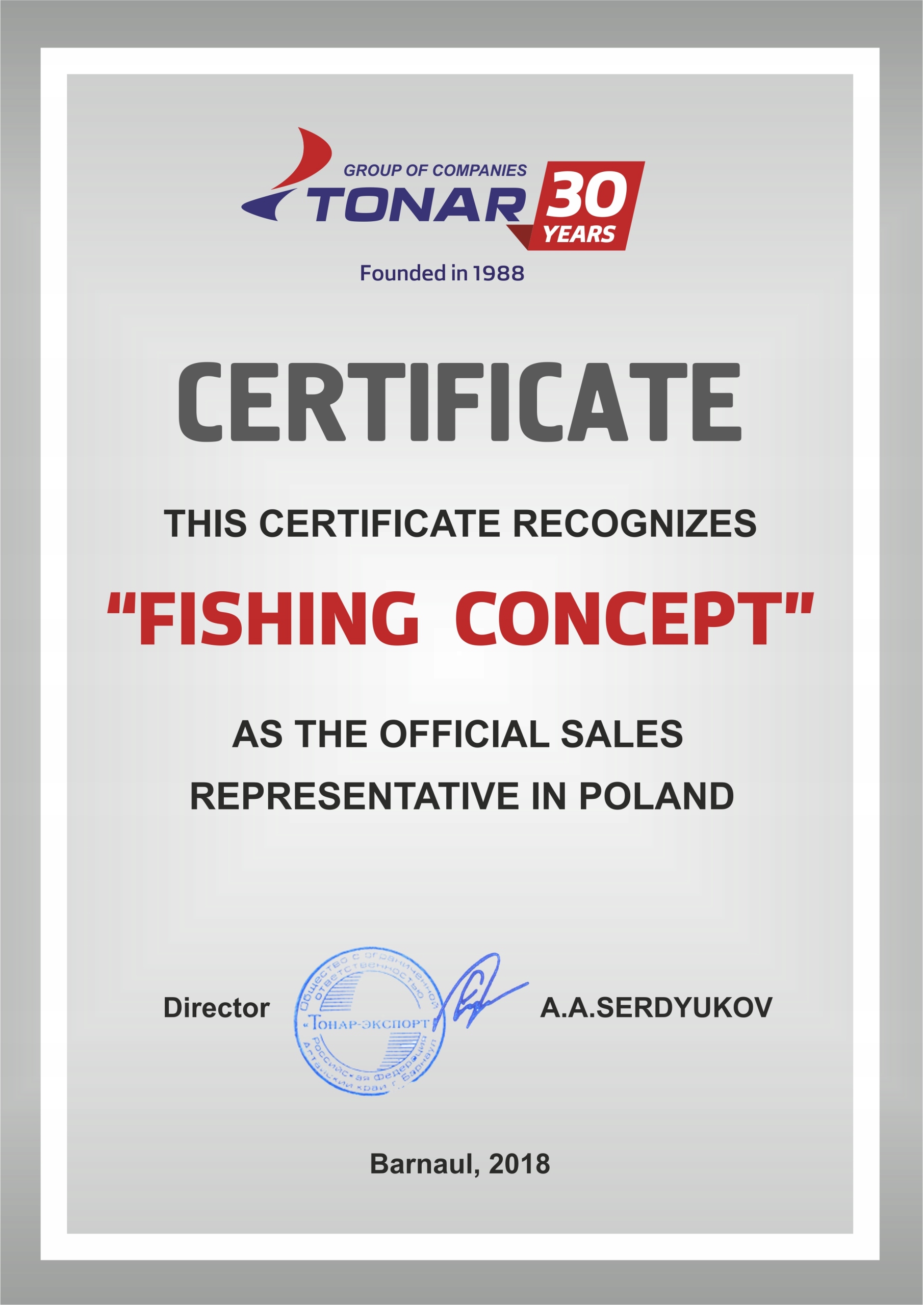 Компания FISHING CONCEPT, владелец бренда «КИВОК», уже несколько лет является официальным эксклюзивным дистрибьютором бренда TONAR в Польше.