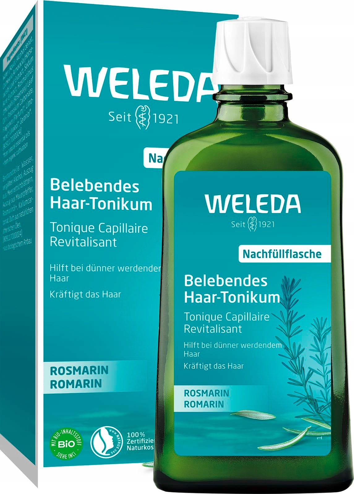 ТОНИК ДЛЯ ВОЛОС WELEDA ПРОТИВ ВЫПАДЕНИЯ С РОЗМАРИНОМ 200 МЛ — натуральное косметическое средство, созданное для укрепления волосяных луковиц, уменьшения их выпадения и стимуляции здорового роста. Его освежающая, легкая формула на основе растительных экстрактов оказывает тонизирующее действие на кожу головы, восстанавливая ее баланс и жизненную силу. Ключевым ингредиентом является розмарин, известный своими свойствами стимулировать микроциркуляцию, что поддерживает насыщение кислородом волосяных фолликулов и стимулирует рост новых волос. Экстракты кресс-салата и хрена дополнительно укрепляют структуру волос, придавая им эластичность, плотность и здоровый блеск. Тоник не утяжеляет волосы, его можно использовать каждый день – как на сухие, так и на влажные волосы, не смывая. Регулярное использование делает волосы более сильными, более устойчивыми к выпадению и полными природной энергии. Продукт веганский, на основе сертифицированных натуральных ингредиентов, без силиконов, синтетических консервантов, красителей и ароматизаторов. Тоник для волос Weleda Rosemary — это эффективное натуральное укрепляющее средство для здоровой кожи головы и сильных и блестящих волос.