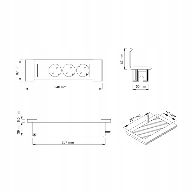 Дополнительным преимуществом USB-розетки FLAT BOX является высота всего39 мм. Благодаря этому удлинитель занимает мало места под столешницей.