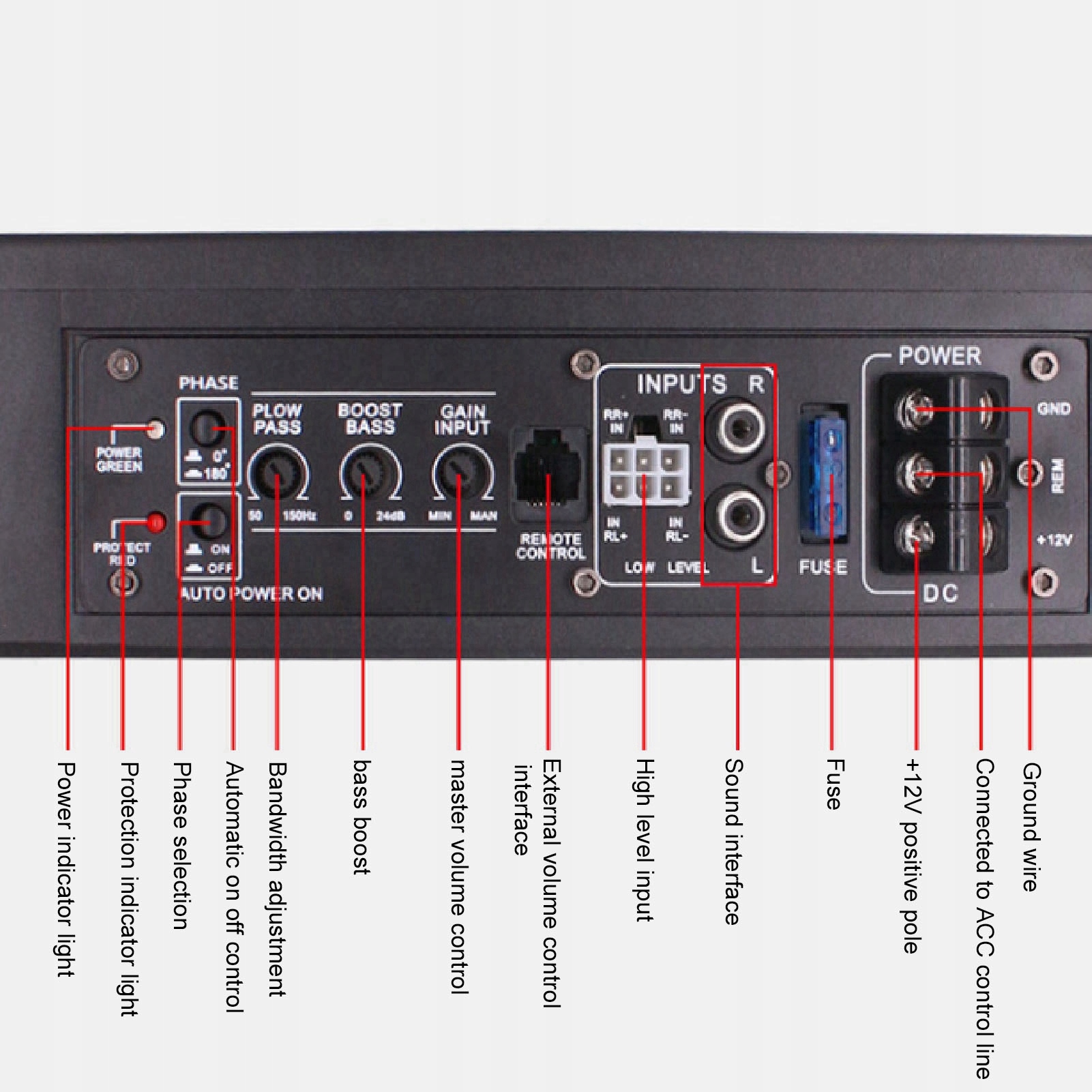 3. Удобный проводной пульт дистанционного управления. Автомобильный сабвуфер оснащен проводным пультом дистанционного управления громкостью басов, позволяющим регулировать усиление, усиление басов и кроссовер, обеспечивая потрясающие басы при пиковой мощности 800 Вт.