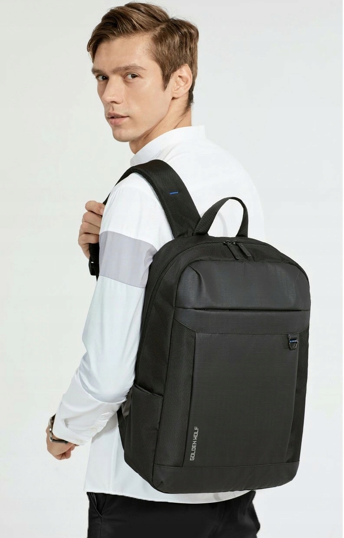 Рюкзак с одним отделением Golden Wolf GB00400 изготовлен из пропитанного и прочного оксфордского материала, обеспечивающего устойчивость к погодным условиям. В передней части рюкзака имеется большой плоский карман для полезных вещей. В основном отделении есть карман для ноутбука размером до 15,6, застегивающийся на липучку, место для вещей, органайзер для аксессуаров и ручек и один больший карман, в который можно положить, например, планшет. По бокам рюкзака имеются эластичные карманы для зонта или напитка. На левой стороне также имеется прорезиненное отверстие для наушников. На задней стенке рюкзака имеется нейлоновый ремень, благодаря которому рюкзак можно надеть на ручку полетной сумки. Рюкзак имеет ручку, поэтому его можно безопасно поднимать даже с тяжелым грузом. Лямки рюкзака эргономичной формы прочно пришиты, одна из них имеет держатель для крепления очков. Плечевые лямки и задняя часть рюкзака отделаны мягкими губками, что позволяет удобно носить его даже с более тяжелым грузом. Рюкзак Golden Wolf GB00400 идеально подходит как для работы, так и для учебы, и его пользователи наверняка оценят его маленький размер и внутреннюю организацию.