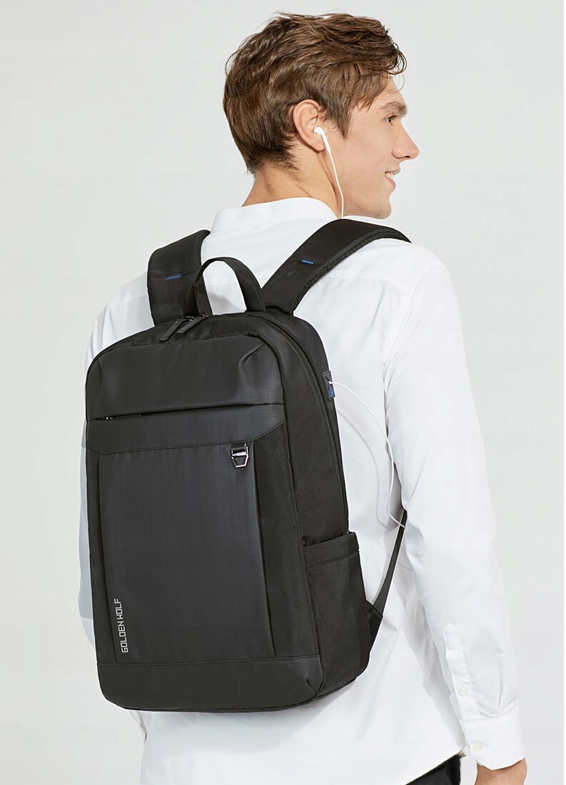 Тонкий мужской рюкзак для ноутбука 15,6 дюйма Golden Wolf GB00400 водонепроницаемый черный