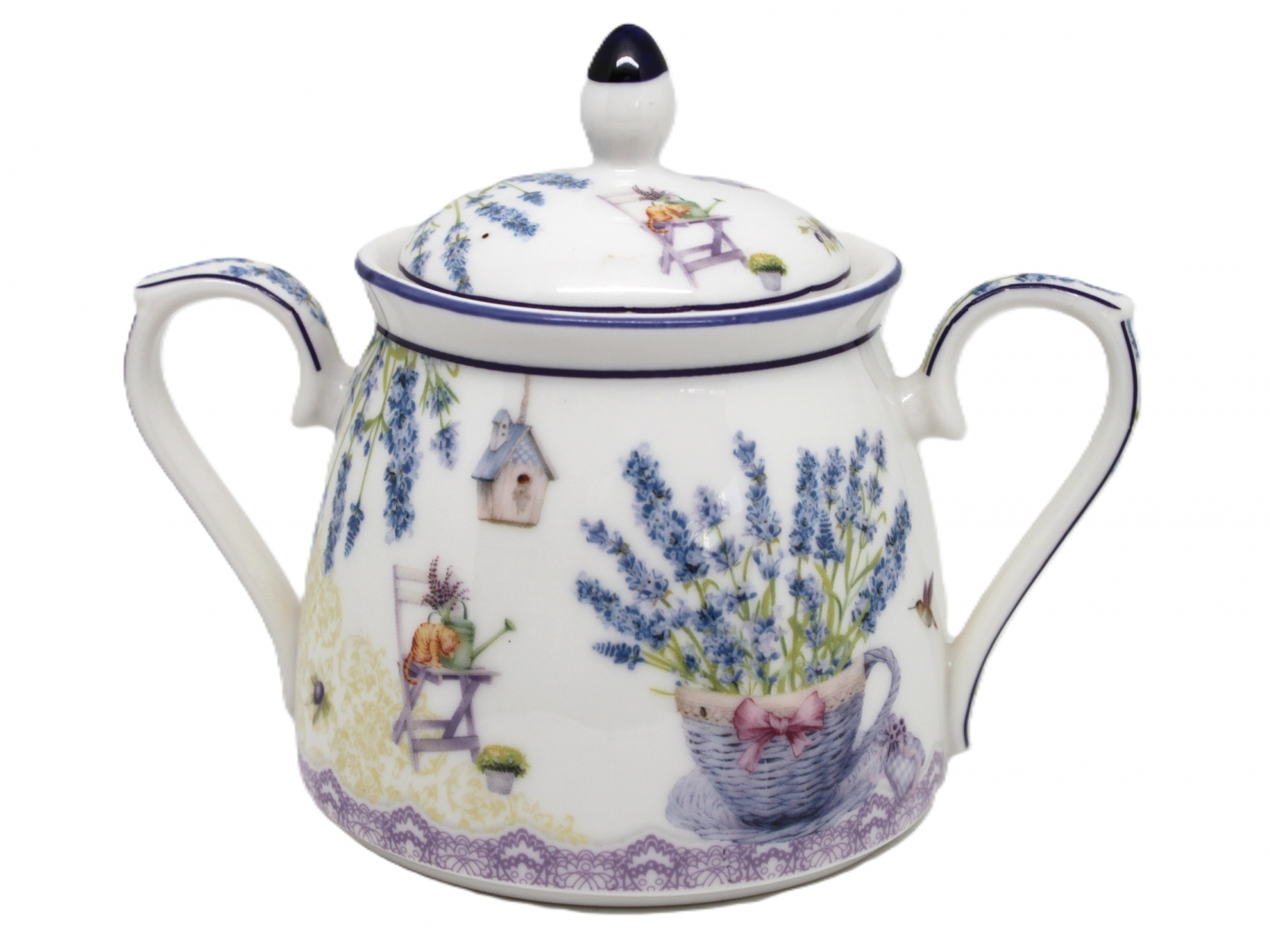 Тонкая фарфоровая сахарная чаша с лавандой