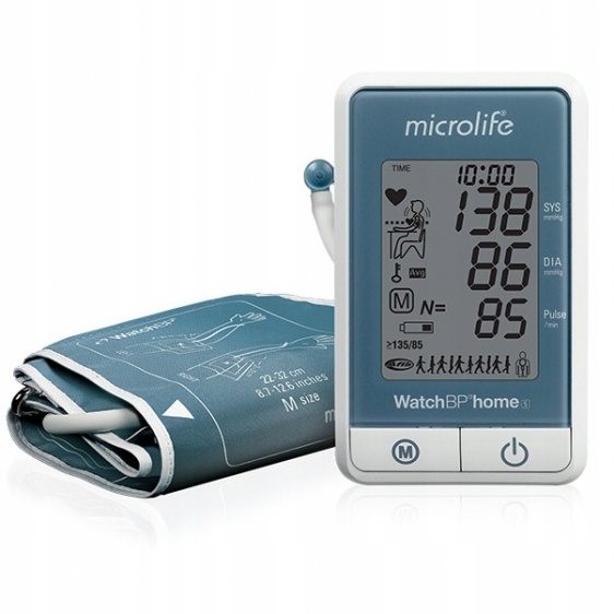 Тонометр Microlife Watch BP Home S на плече представляет собой устройство для автоматического измерения артериального давления и частоты сердечных сокращений с функцией AIFB ( при мерцательной аритмии - раннее выявление мерцательной аритмии и гипертонии.