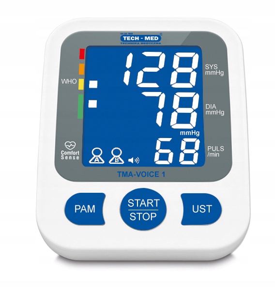 TECH-MED VOICE-1 — современный электронный тонометр, использующий осциллометрический метод измерения. Тонометр отличается высокой точностью измерения – эквивалентной точности измерений, производимых путем аускультации с помощью механических сфигмоманометров (медицинских тонометров) квалифицированным медицинским персоналом. Такая точность подтверждена клиническими испытаниями.