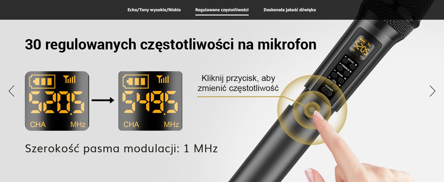 Регулируемые частоты: Благодаря 30 доступным вариантам частот одновременно можно использовать до 30 систем. Многоканальная функция обеспечивает бесперебойную работу, позволяя плавно переключать частоты даже при возникновении проблем с установленными частотами.