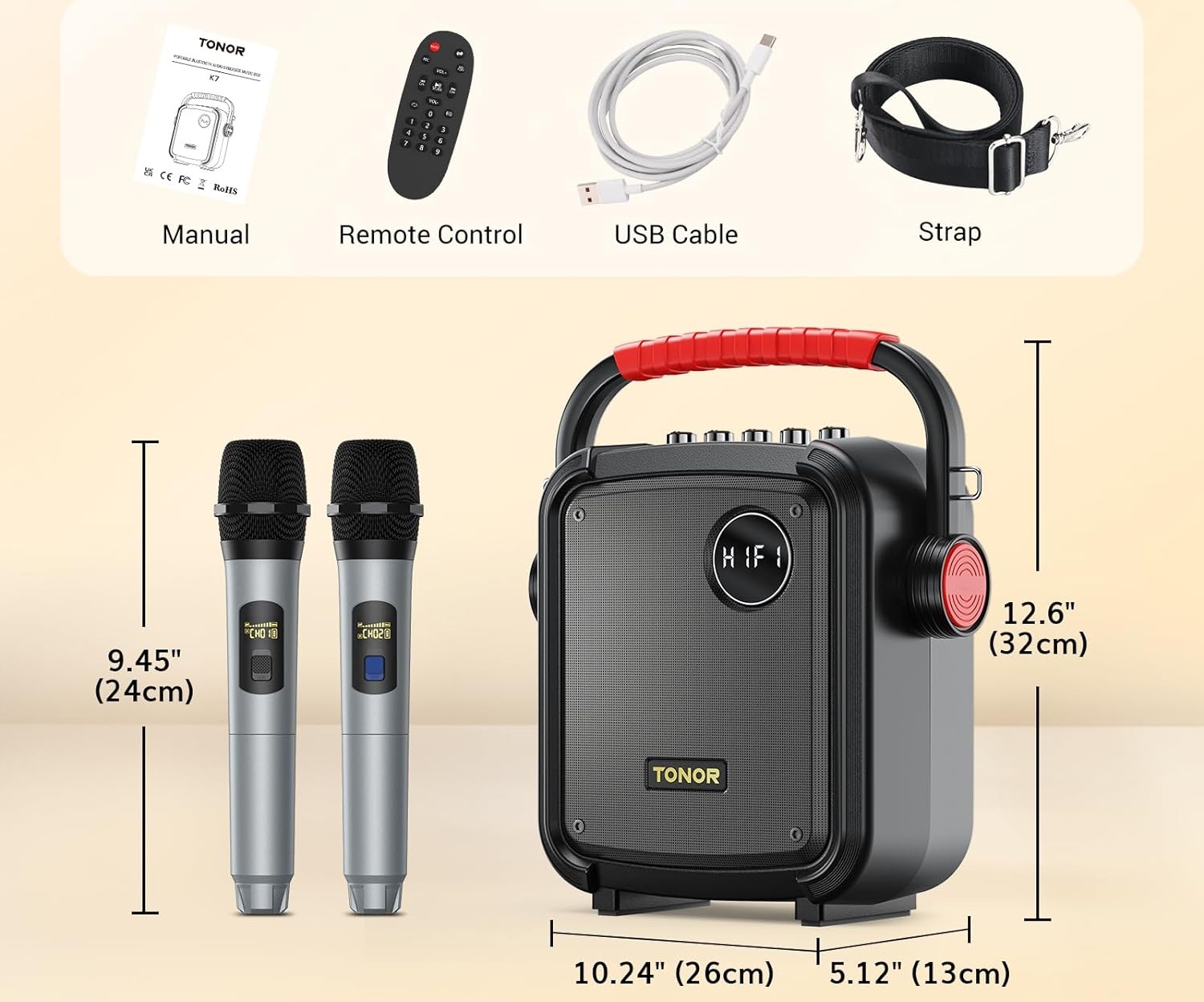 В комплект Tonor K7 входит все необходимое для караоке — 1 караоке-машина, 2 беспроводных микрофона, 1 USB-кабель, 1 съемный плечевой ремень и инструкция по эксплуатации. Также идеально подходит в качестве подарка для людей всех возрастов, обеспечивая захватывающий опыт.