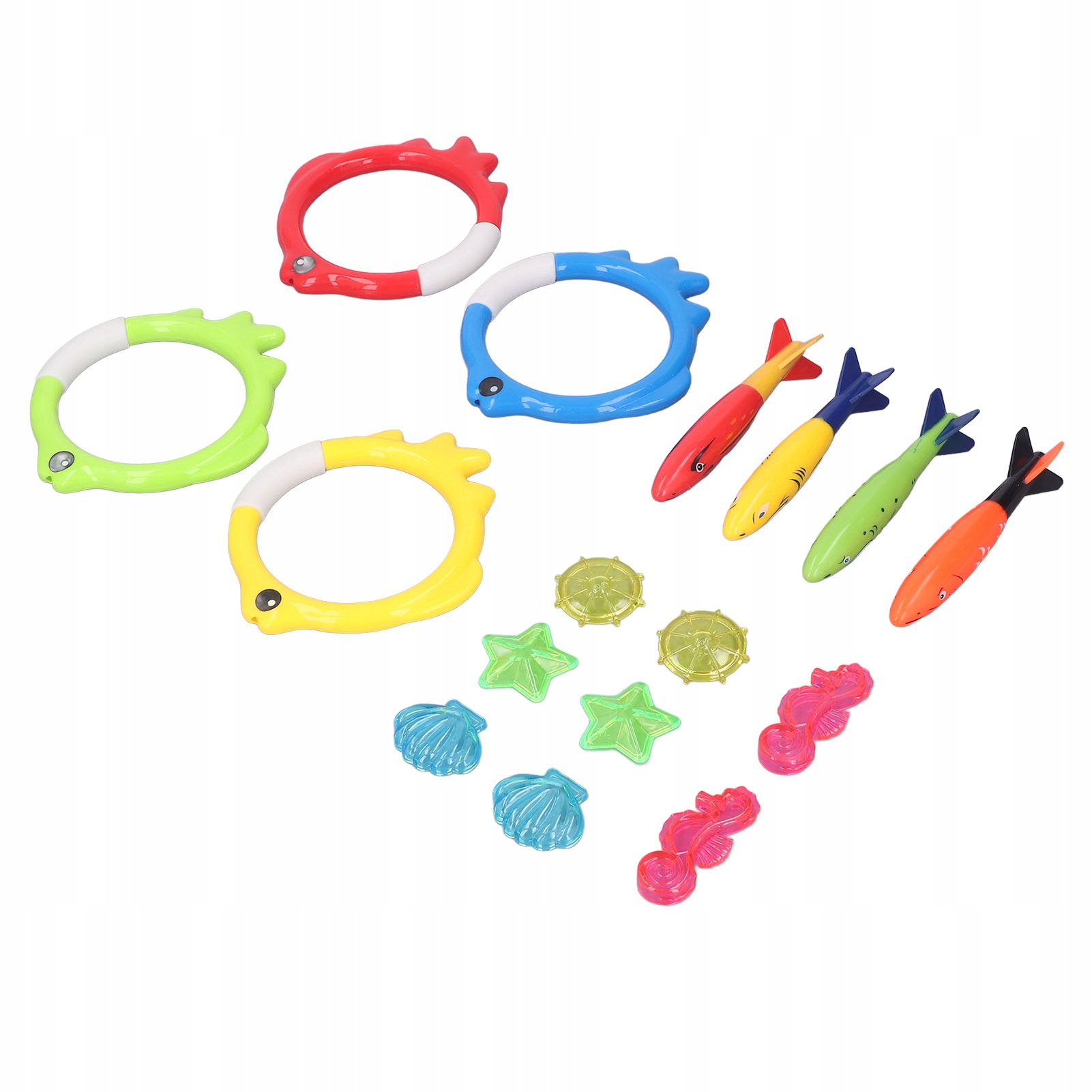 3. В комплект входит: Набор игрушек для дайвинга состоит из 16 ярких игрушек, которые легко найти под водой и которые можно использовать различными способами, чтобы усилить удовольствие от занятий водными видами спорта.