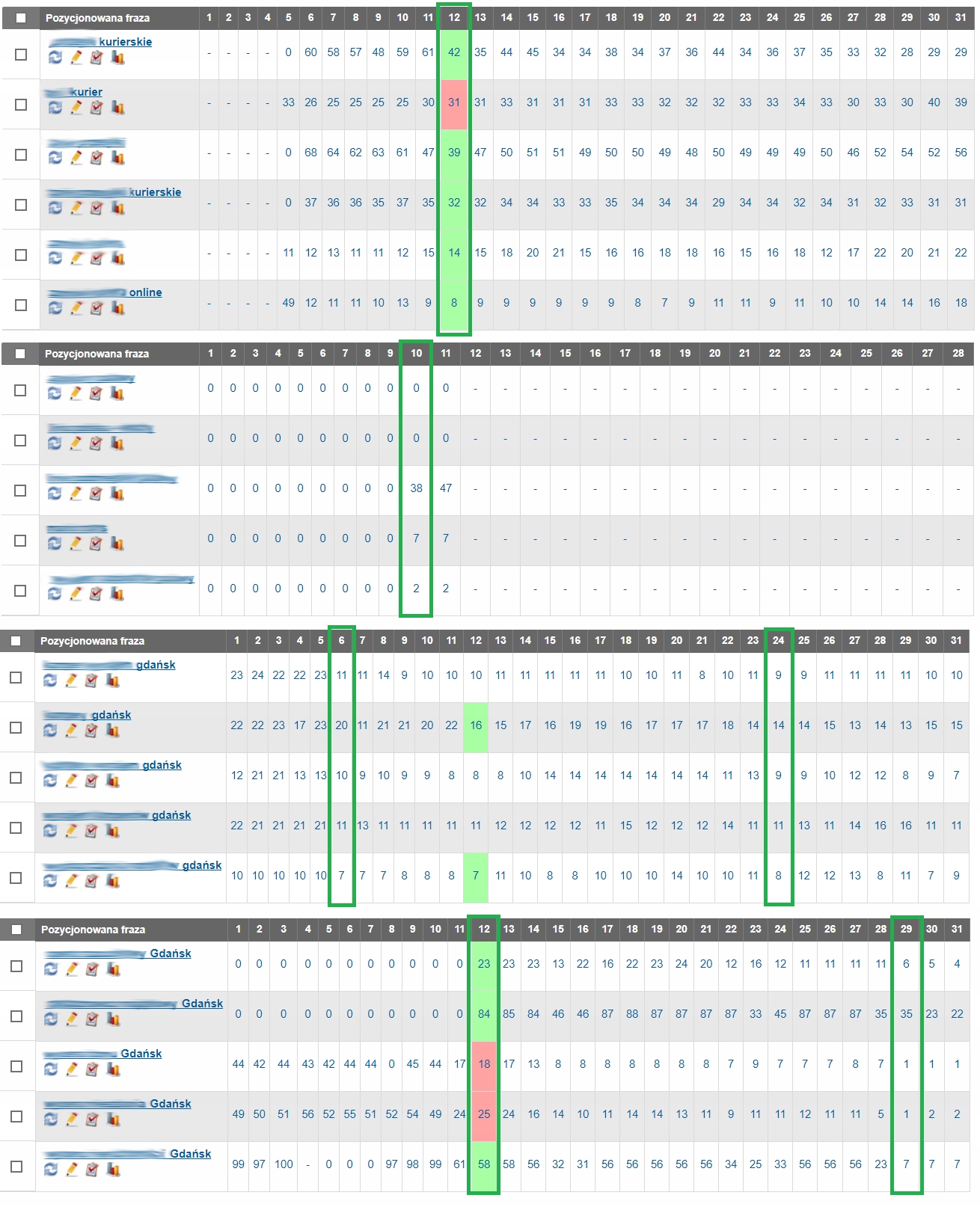 7. Позиционирование касается 7 фраз: 7 фраз на 1 миллион результатов поиска в google.pl.