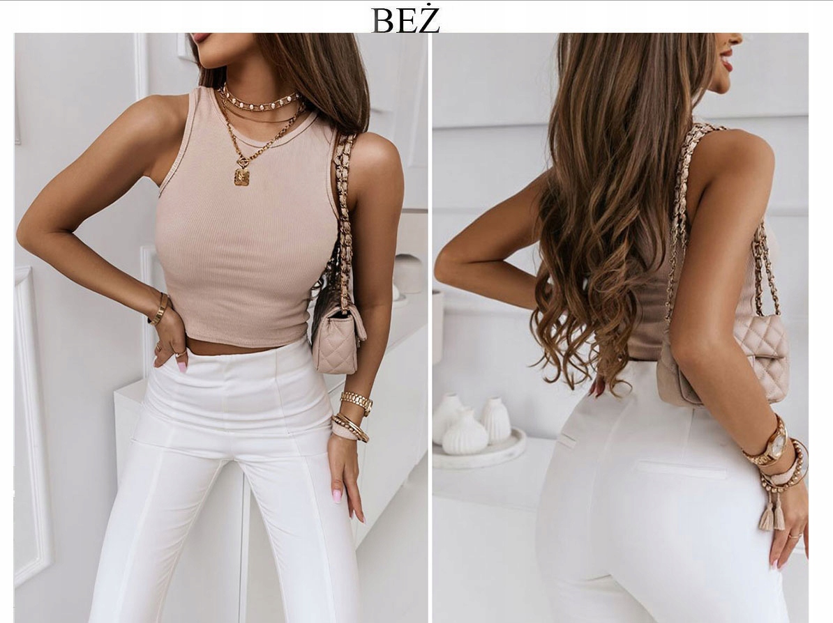 Наше следующее предложение — простой топ в рубчик. Идеально подходит для теплых дней. Изготовлен из нежного материала, он обеспечит комфорт при ношении. У него более толстые бретели и изящный круглый вырез. Он идеально подходит как для повседневного стиля, так и в качестве спортивной одежды. Выберите свой идеальный цвет и создайте стиль с нашей моделью.