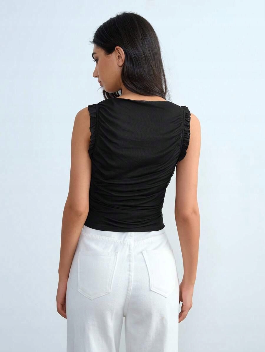 Исключительно нежный и удобный верх нижнего белья классического белого цвета, который станет неотъемлемым элементом вашего гардероба. Изготовленный из высококачественного полиэстера, материал поражает своей мягкостью и эластичностью, обеспечивая приятное ощущение контакта с кожей без ощущения давления. Обычная линия гарантирует хорошо сидящий крой, подходящий как для повседневного использования, так и для более элегантных ситуаций, тонко подчеркивая силуэт, сохраняя при этом естественный комфорт при ношении.