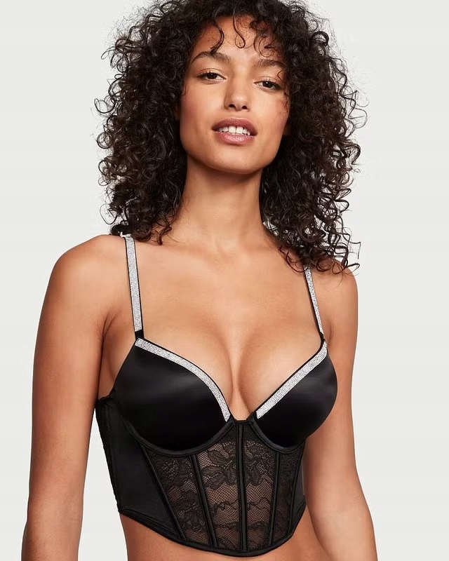 Топ корсет 2x push-up Victoria's Secret Bombshell чорні циркони 70B (32B)