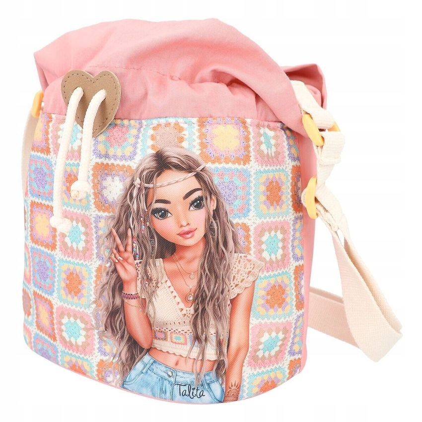 Очень милая сумка TOPModel Hippie Heart в мягких пастельных тонах украшена забавным лоскутным узором, напоминающим вязание крючком. А спереди отличный мотив модели хиппи. Остальная часть сумки нежно-розового цвета. С практичной кулиской и регулируемым плечевым ремнем из натурального хлопка бежевого цвета.