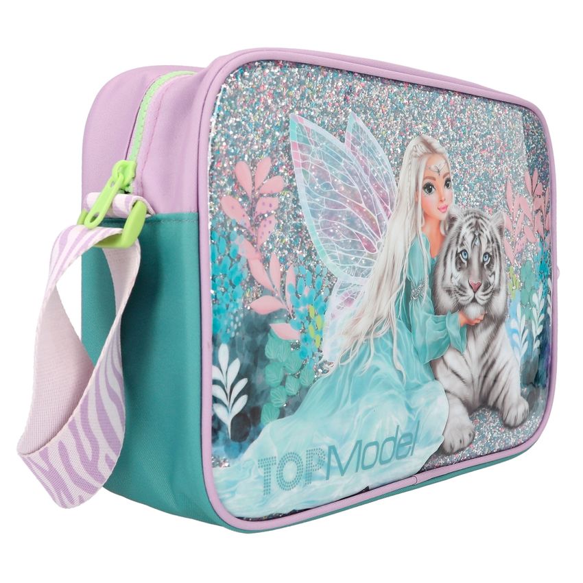 Fantastic Tiger: сумка через плечо TOPModel в великолепных оттенках бензина и лаванды с деталями салатового цвета имеет блестящую переднюю часть с классным тигровым мотивом TOPModel. Плечевой ремень с принтом тигровых полосок регулируется по длине, внутренний карман на молнии и отдельный карман.