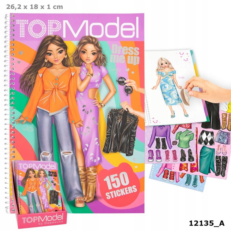 Книга-раскраска Dress Me Up Big Top Model с наклейками, внутри24 страницы для раскрашивания и нанесения наклеек, 7 страниц с наклейками