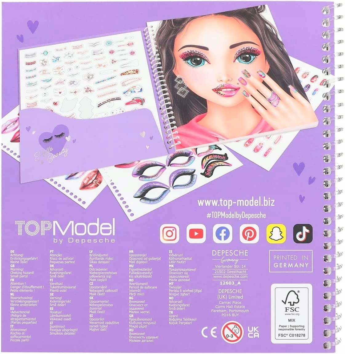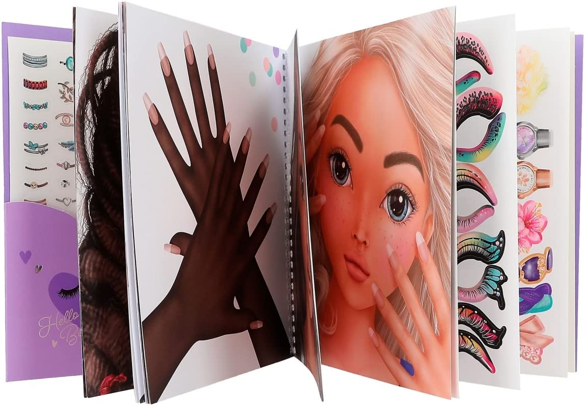 С помощью книги наклеек TOPModel Dress Me Up девушки смогут создавать красивый макияж и маникюр и дать волю своему воображению. На 24 страницах заранее напечатаны различные мотивы, которые вы можете раскрашивать и наклеивать по настроению. В книгу также входят 7 листов наклеек со множеством аксессуаров и декоративных наклеек. Высококачественную книжку-раскраску легко переворачивать благодаря практичному круговому соединению, ее размеры составляют примерно 18 x 17,5 x 1,2 см, и она позволяет вам творчески проводить свободное время.