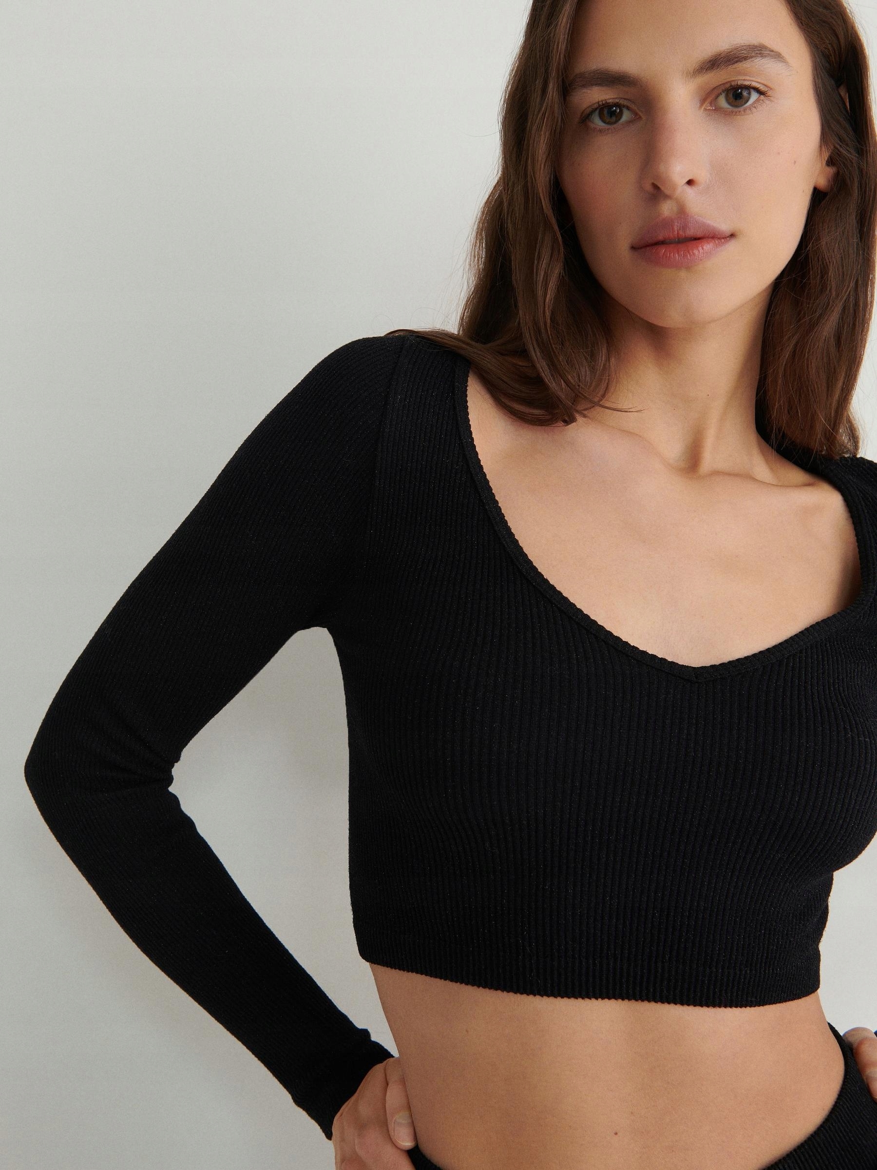 ТОП В РЕБРИКУ С ДЛИННЫМ РУКАВОМ GLITTER XS/S srr KC52117