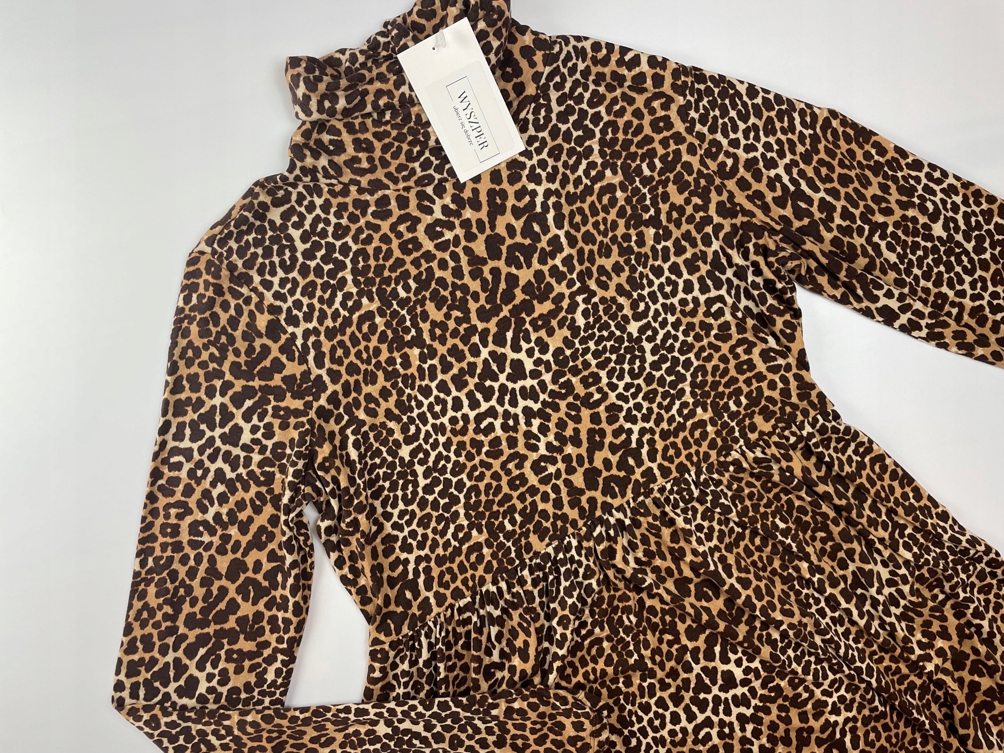 - Женская блузка Материнство. Блузка с красивым леопардовым анималистическим узором. Верхняя часть блузки приталенная, а низ представляет собой слегка расклешенную оборку. У блузки длинные рукава и водолазка.