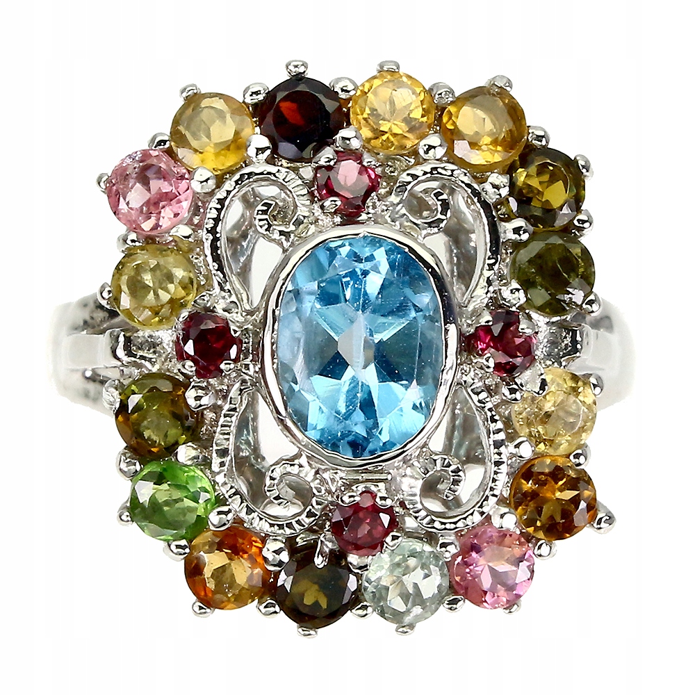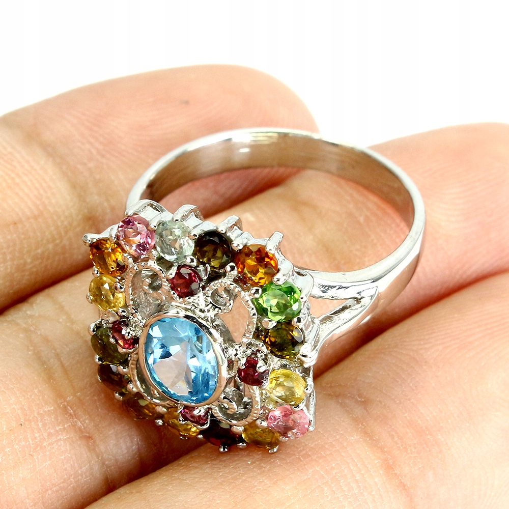 TOPAZ TURMALINY PIERSCIONEK