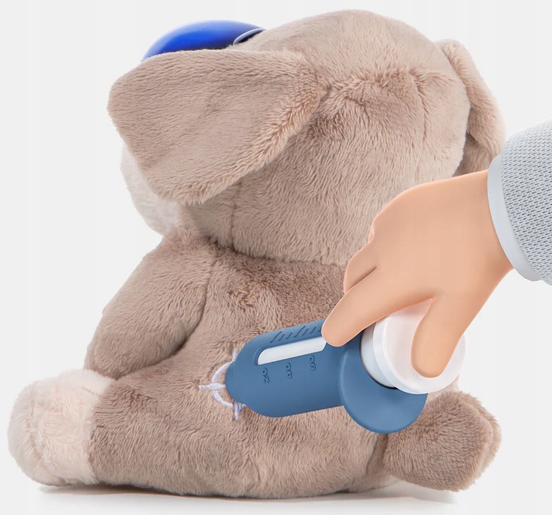 В распоряжении маленького доктора целый набор профессиональных инструментов: стетоскоп, термометр, интерактивный шприц, таблетки, а также защитный воротник и диагностическая карта с рентгеновскими иллюстрациями. С их помощью он может внимательно осматривать своего пациента, проводить лечение и отслеживать ход лечения.