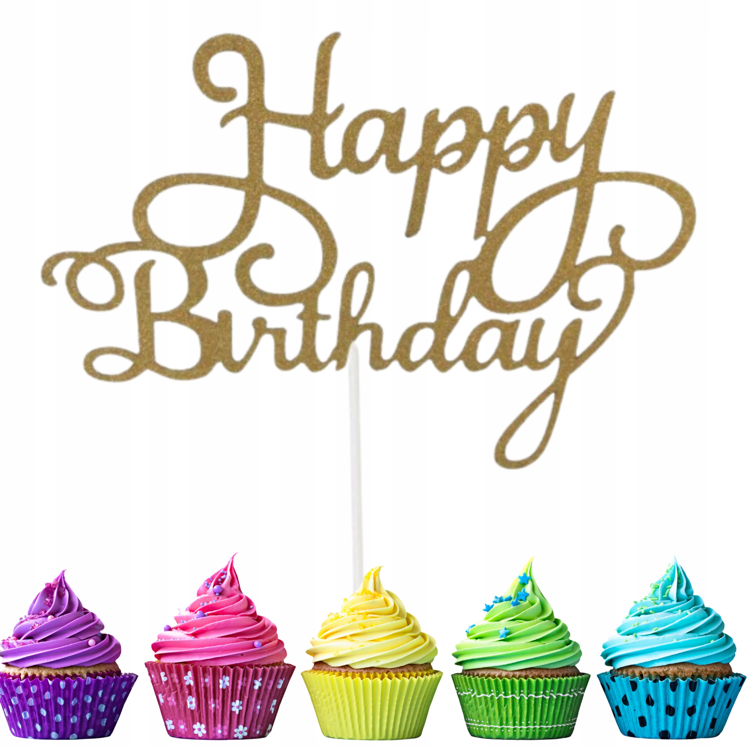 ✅ УКРАШЕНИЕ ТОРТА ТОПЕР НАДПИСЬ С ДНЕМ РОЖДЕНИЯ - ЗОЛОТО