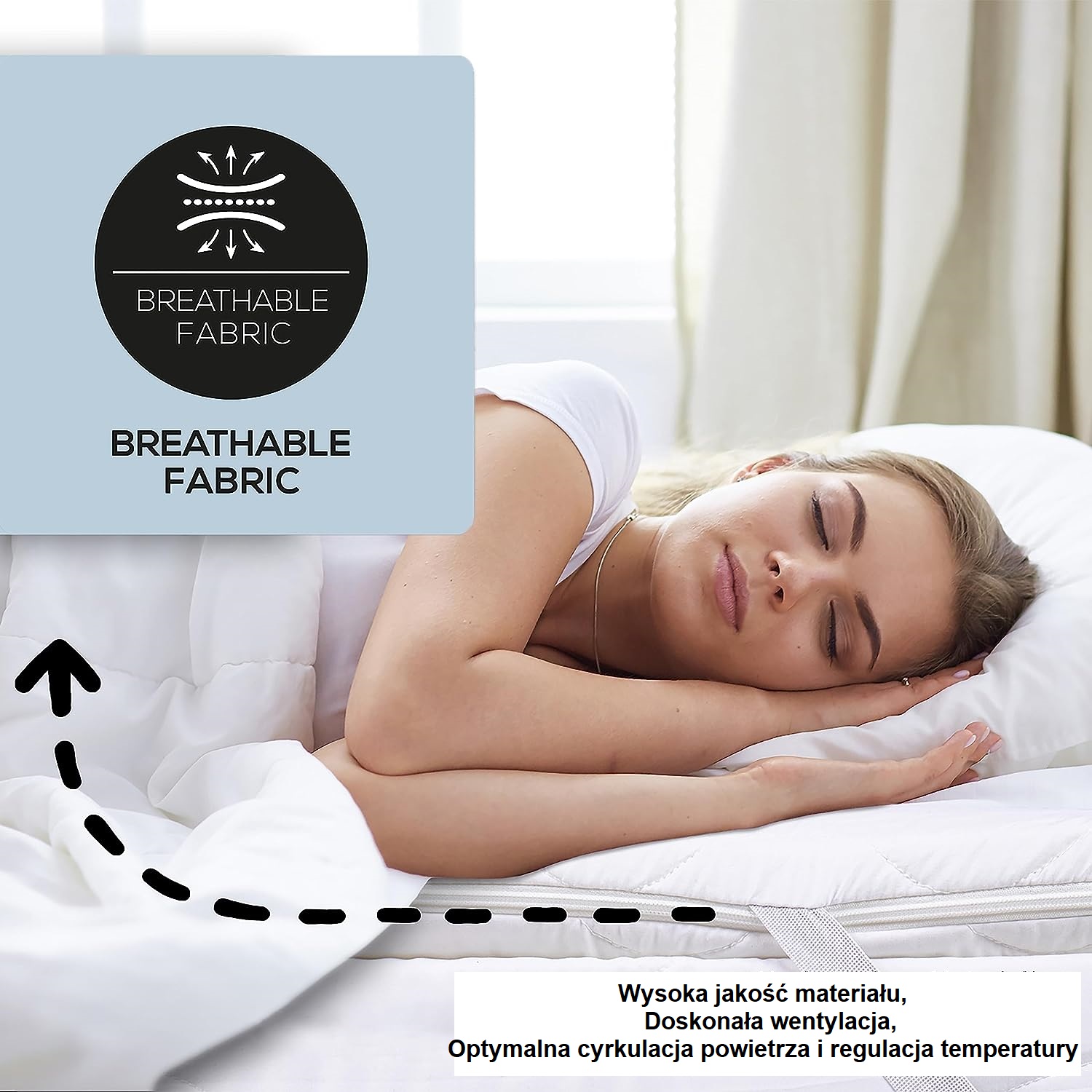 ✅ Качественный чехол - дышащая микрофибра плотностью 150 г/м2, простеганная высококачественным волокном, оптимально впитывает влагу и обеспечивает сухой климат для сна. Чехол имеет вшитую молнию, благодаря которой его легко снять. Его можно стирать в стиральной машине при температуре до 60 градусов.