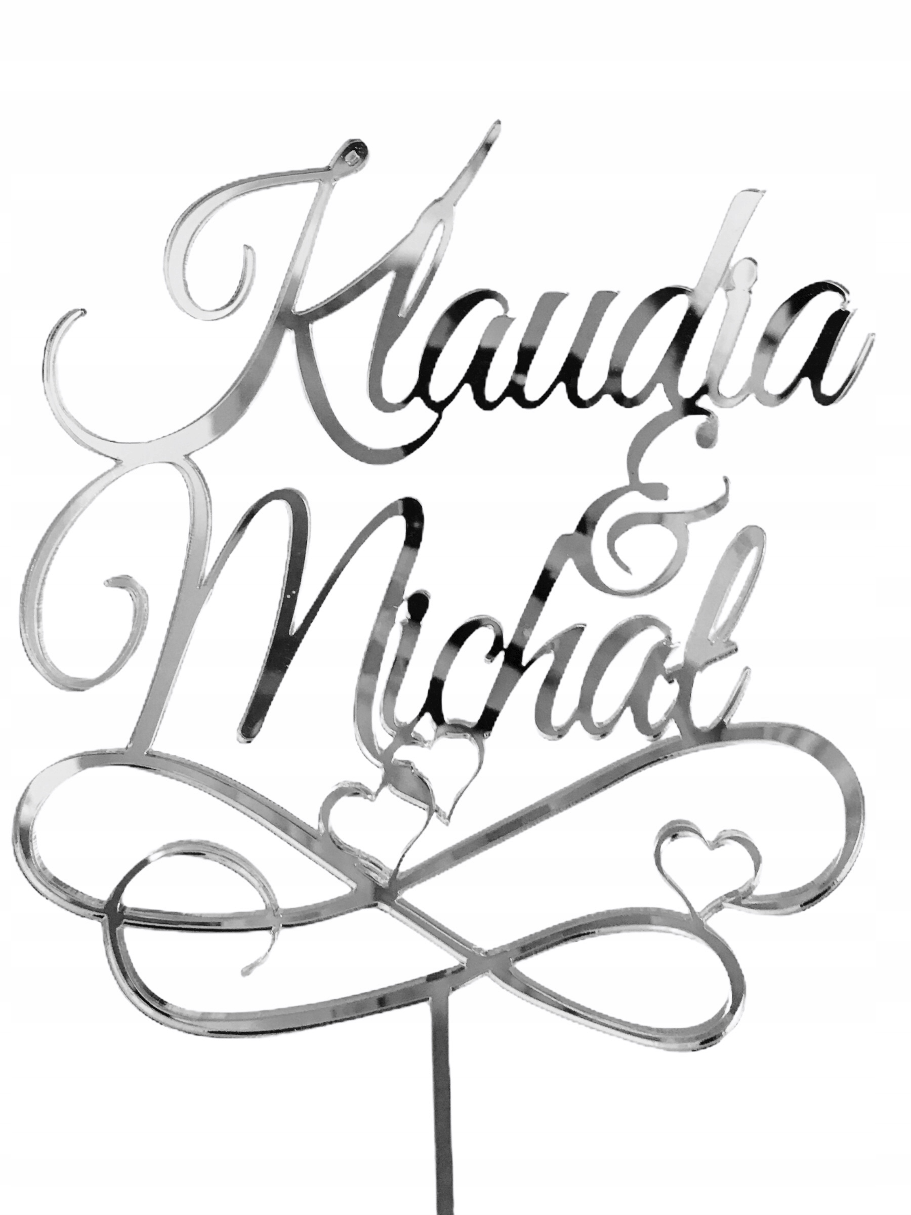 ТОППЕР топпер ИМЕНА ДЛЯ СВАДЕБНОГО ТОРТА СЕРЕБРЯНОЕ ЗЕРКАЛО