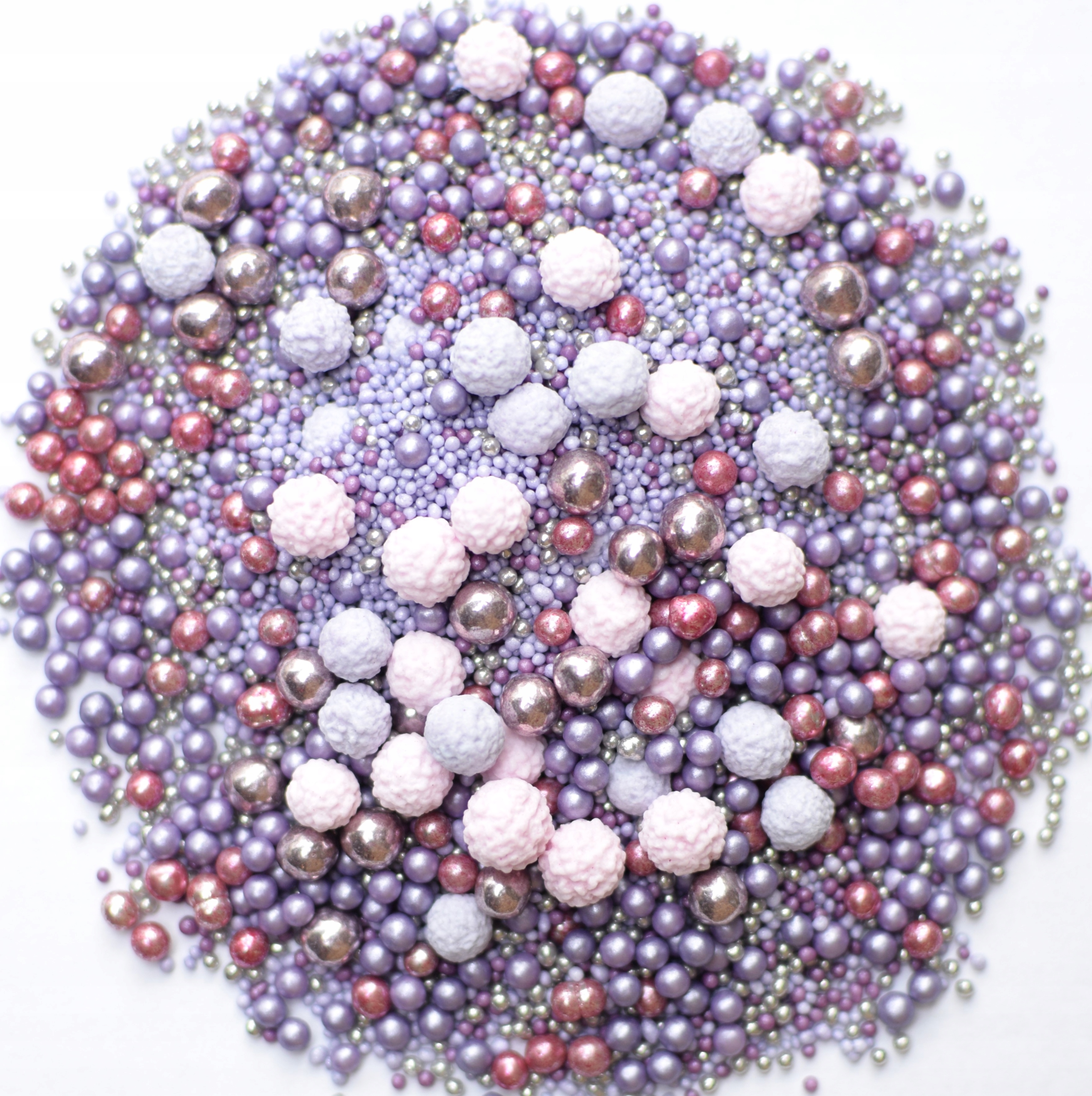 Кондитерская посыпка "ФИОЛЕТОВАЯ ПРИНЦЕССА" - открытие волшебной шкатулки принцессы. Нежная лавандовая база создает фон, на котором светло-фиолетовая и розовая мимоза и сверкающий розовый жемчуг выглядят драгоценностями. Это сочетание излучает элегантность и шарм, придавая вашей выпечке королевский вид, который порадует каждого гурмана.