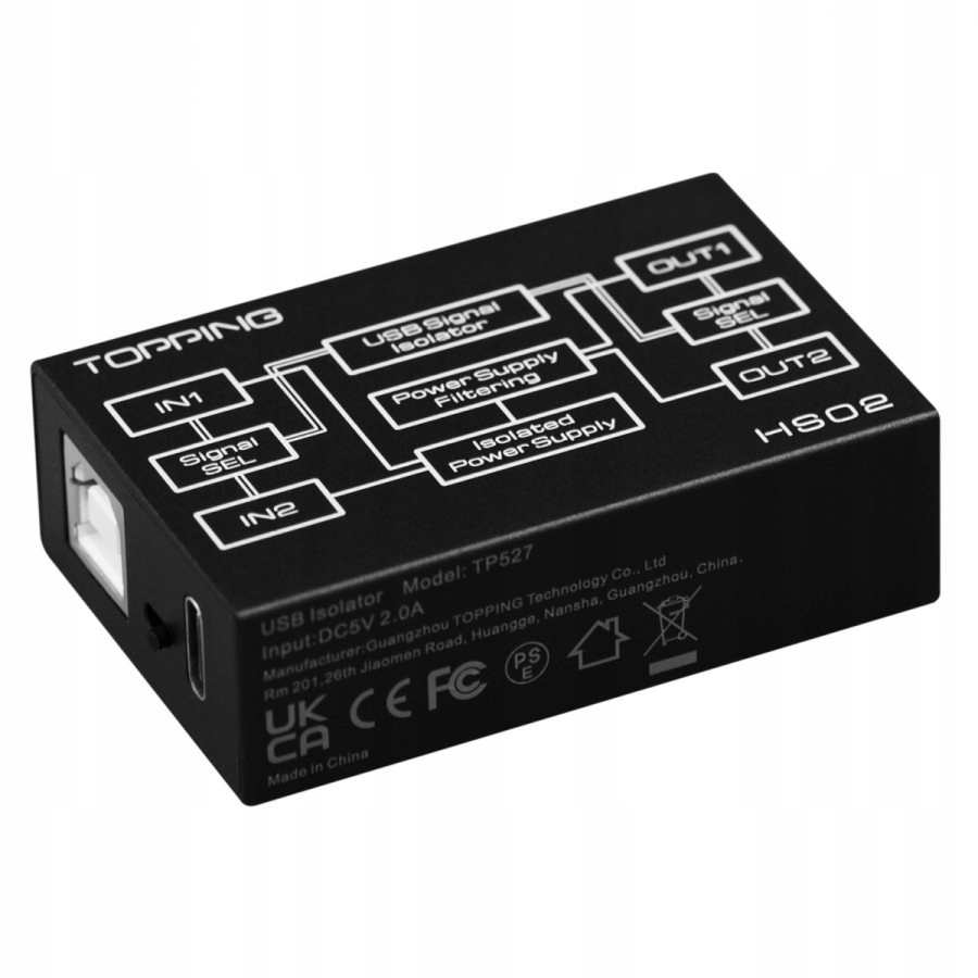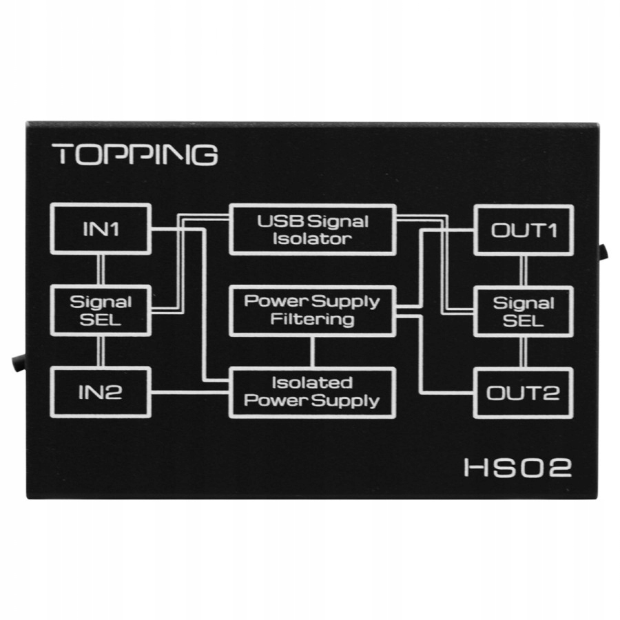 Topping HS02 b> полностью изолированная конструкция означает, что он не будет вводить новое помещение, если используется вспомогательная питание, а сигнал Audio идеально подходит из любого заземления. HS02 предлагает двойные входы и выходы: USB-B и USB-C на стороне ввода, USB-A и USB-C на стороне вывода. С каждой стороны переключатель позволяет вам выбрать желаемый вход и выход. Изолятор также поддерживает высокие частоты отбора проб до PCM 32 -битной 768 кГц и DSD512.