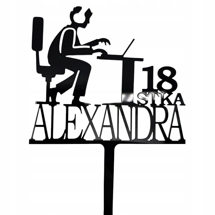 Топпер для ІТ-гравця з назвою КОМП'ЮТЕР на чорному торті з оргскла