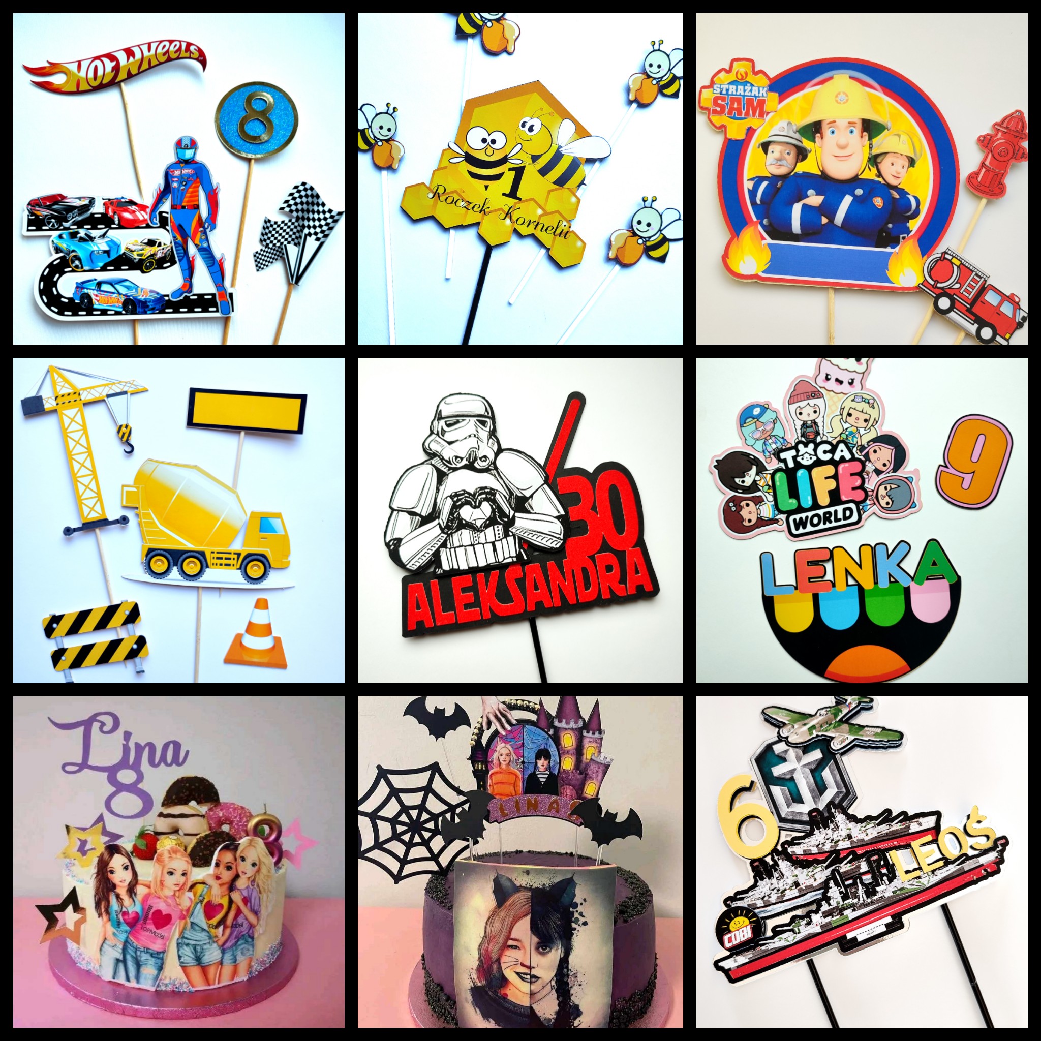 Все изготовлены из жесткого картон выше 300 мг. Графические топперы для детей с двойным приклеиванием. Cm