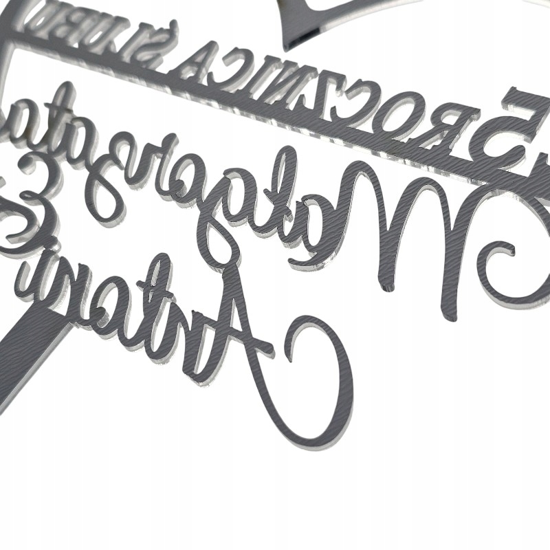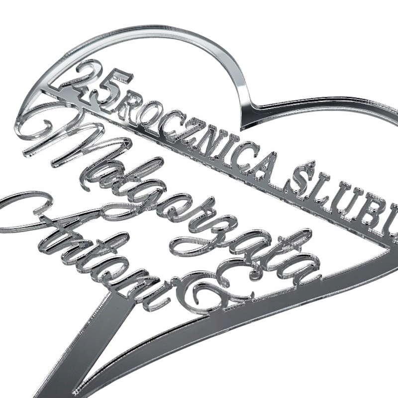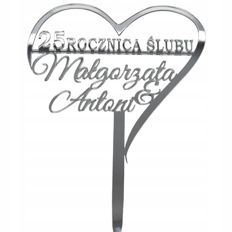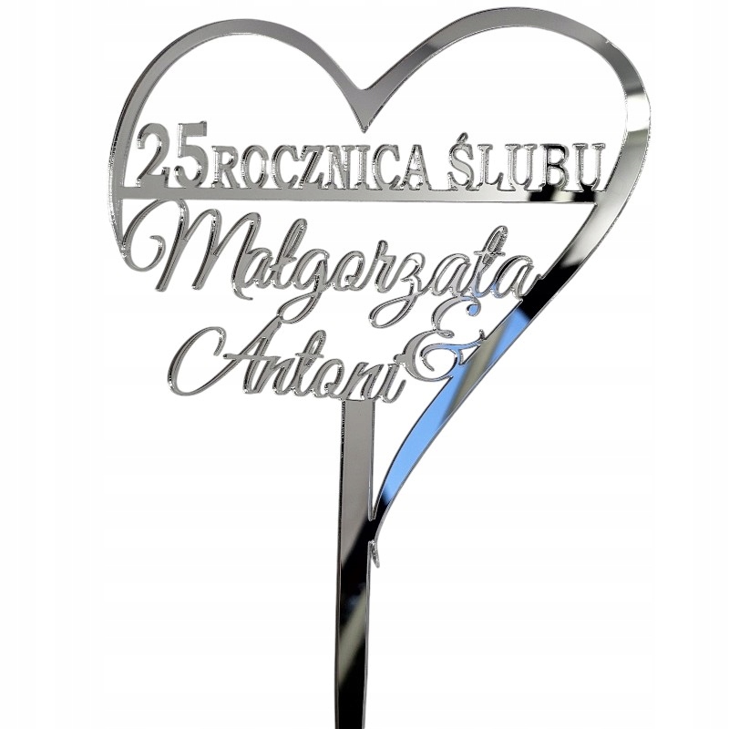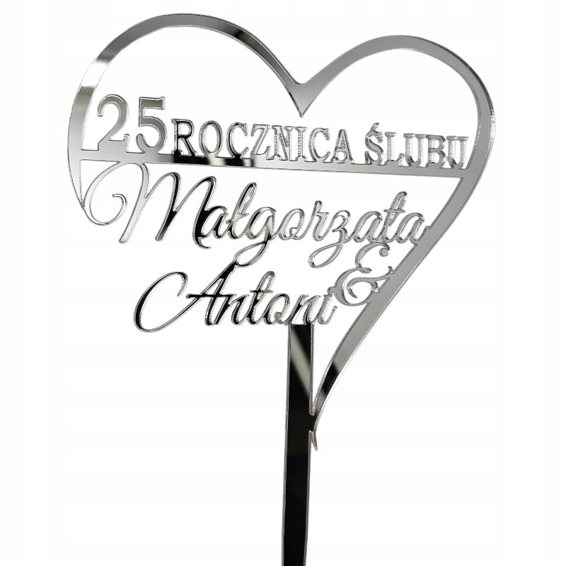 Топпер для торта 25 лет свадьбы СЕРЕБРЯНЫЙ ЮБИЛЕЙ с именами серебряное зеркало