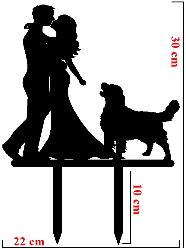 Topper для свадебного торта - молодая пара и золотая собака -поиска