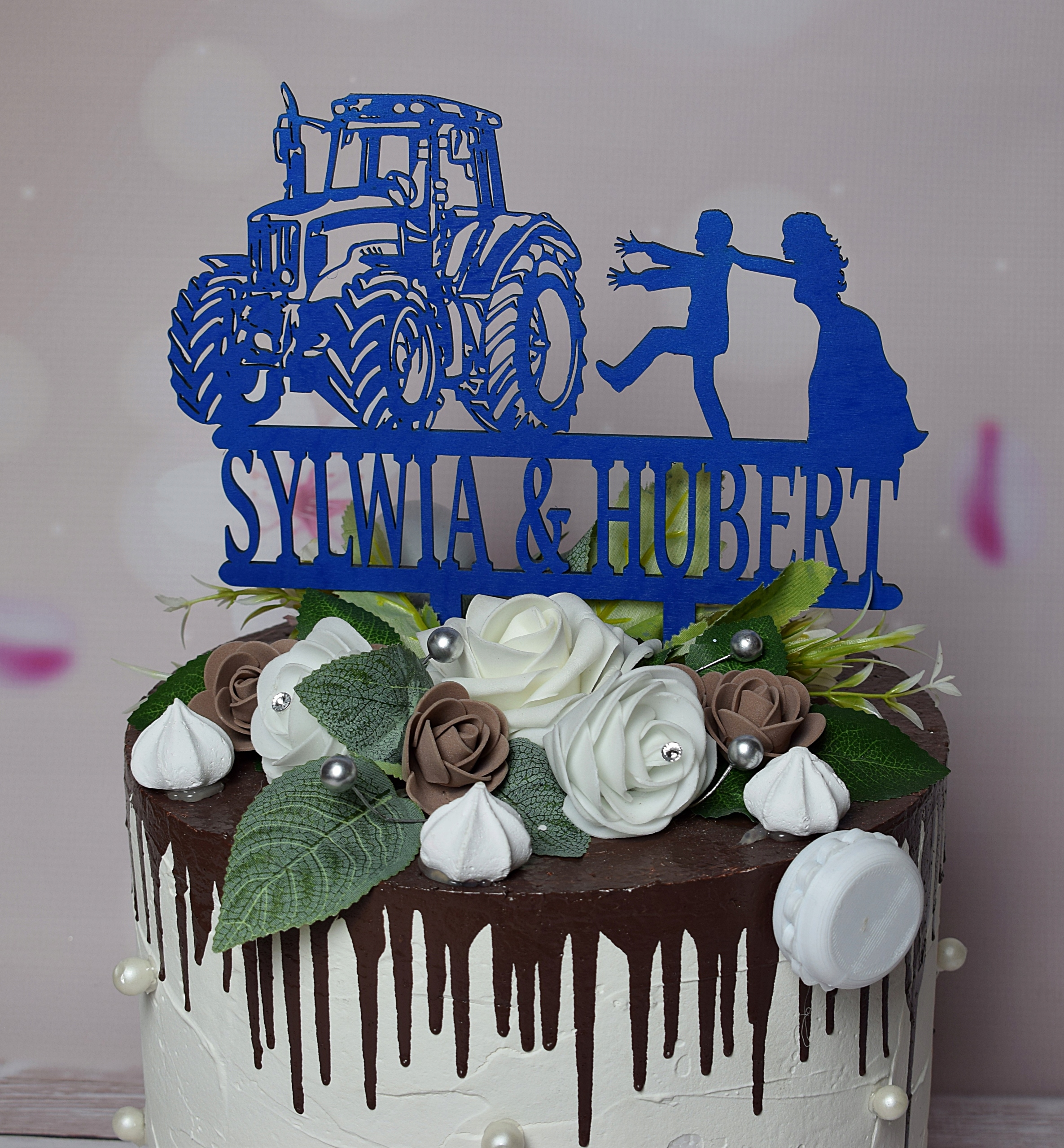Персонализированный топпер для свадебного торта - молодая пара с трактором. p>