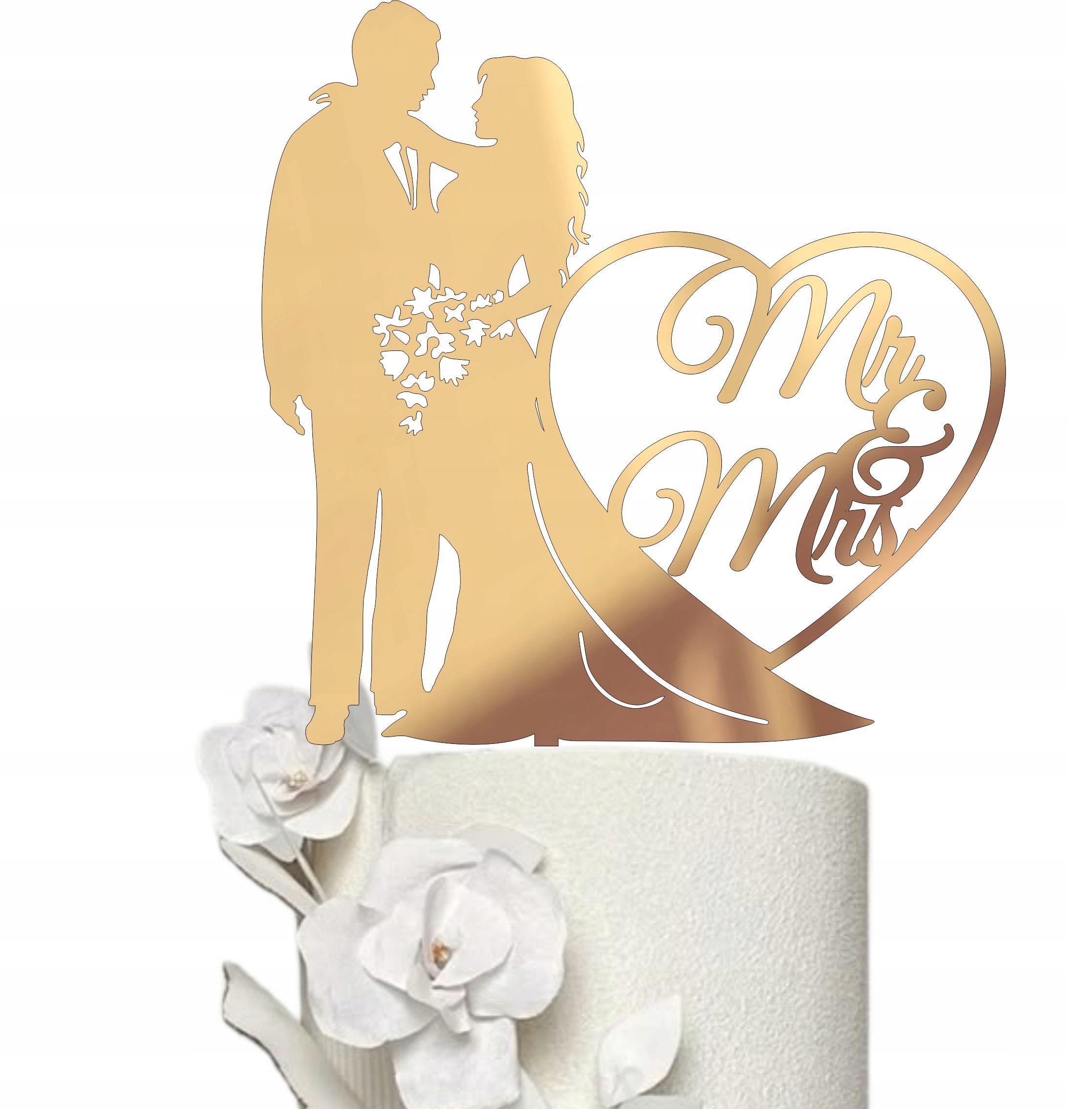 ТОППЕР ДЛЯ ВЕСІЛЬНОГО ТОРТА ПАРА МОЛОДА MR MRS ВЕСІЛЛЯ ЗОЛОТИЙ ПЛЕКСИГЛАС