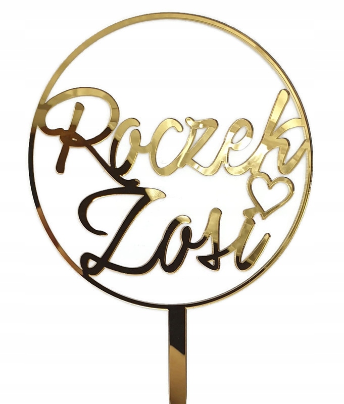 Топпер із золотим написом однорічне золоте дзеркало NAME R9