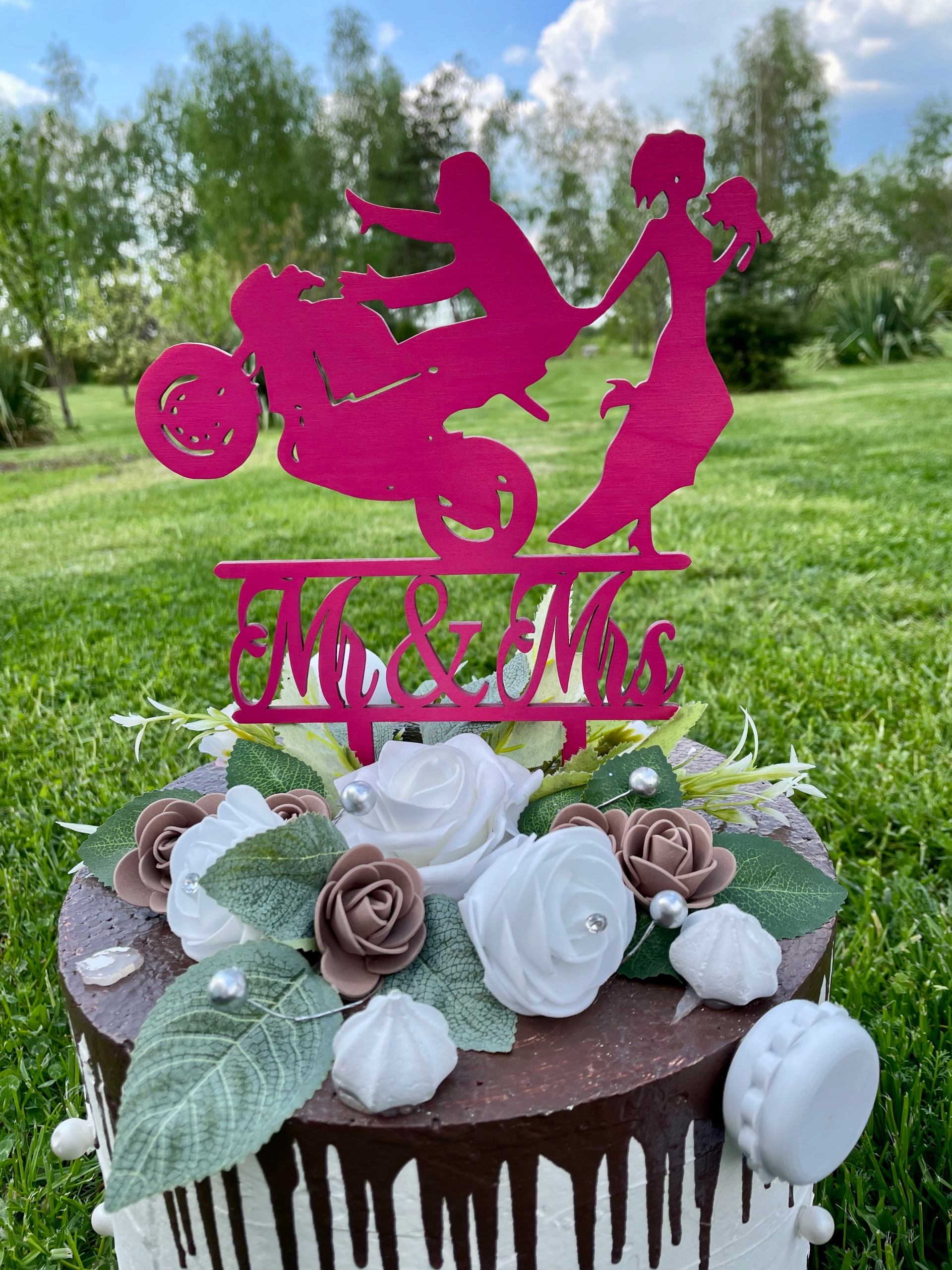 Topper Motor для свадебной молодой пары с велосипедной 30 см. Украшение свадебного торта