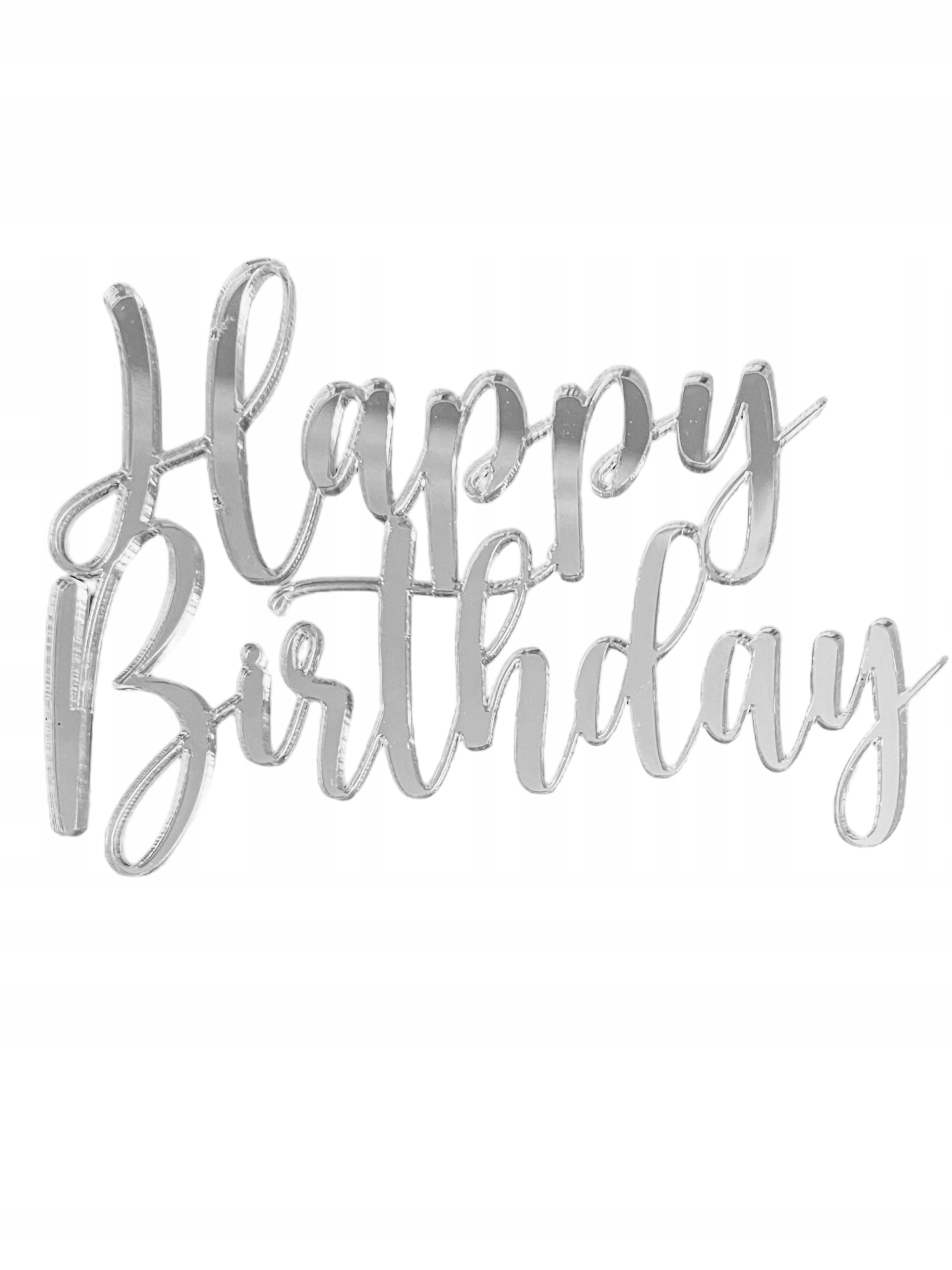 ТОПЕР для торта С ДНЕМ РОЖДЕНИЯ, серебряное зеркало