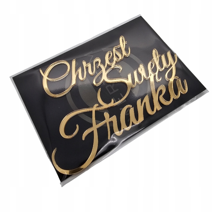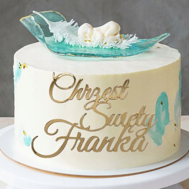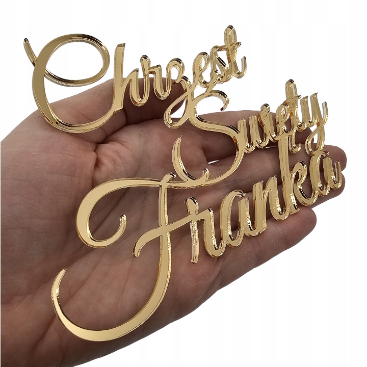 Topper na bok tortu złoty DEKOR z imieniem na Chrzest IMIĘ złote lustro