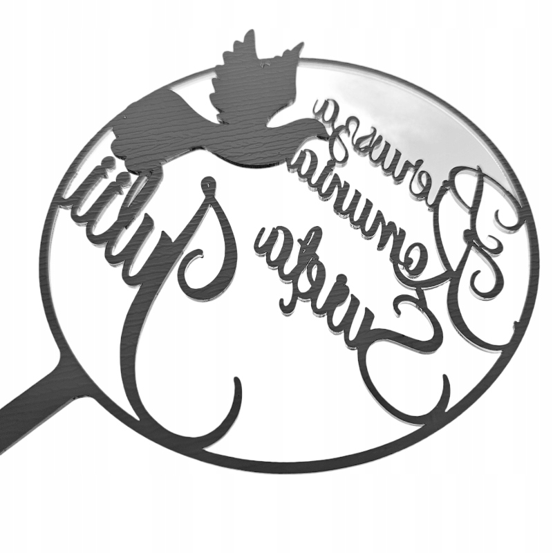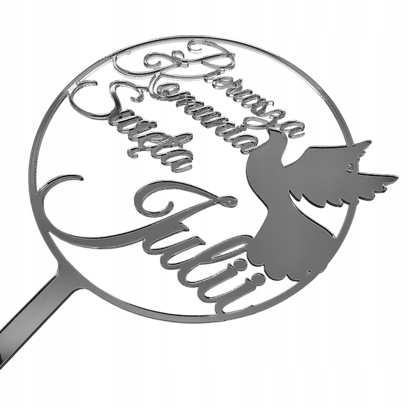 Topper na komunię z imieniem srebrny Komunia Święta IMIĘ srebrne lustro