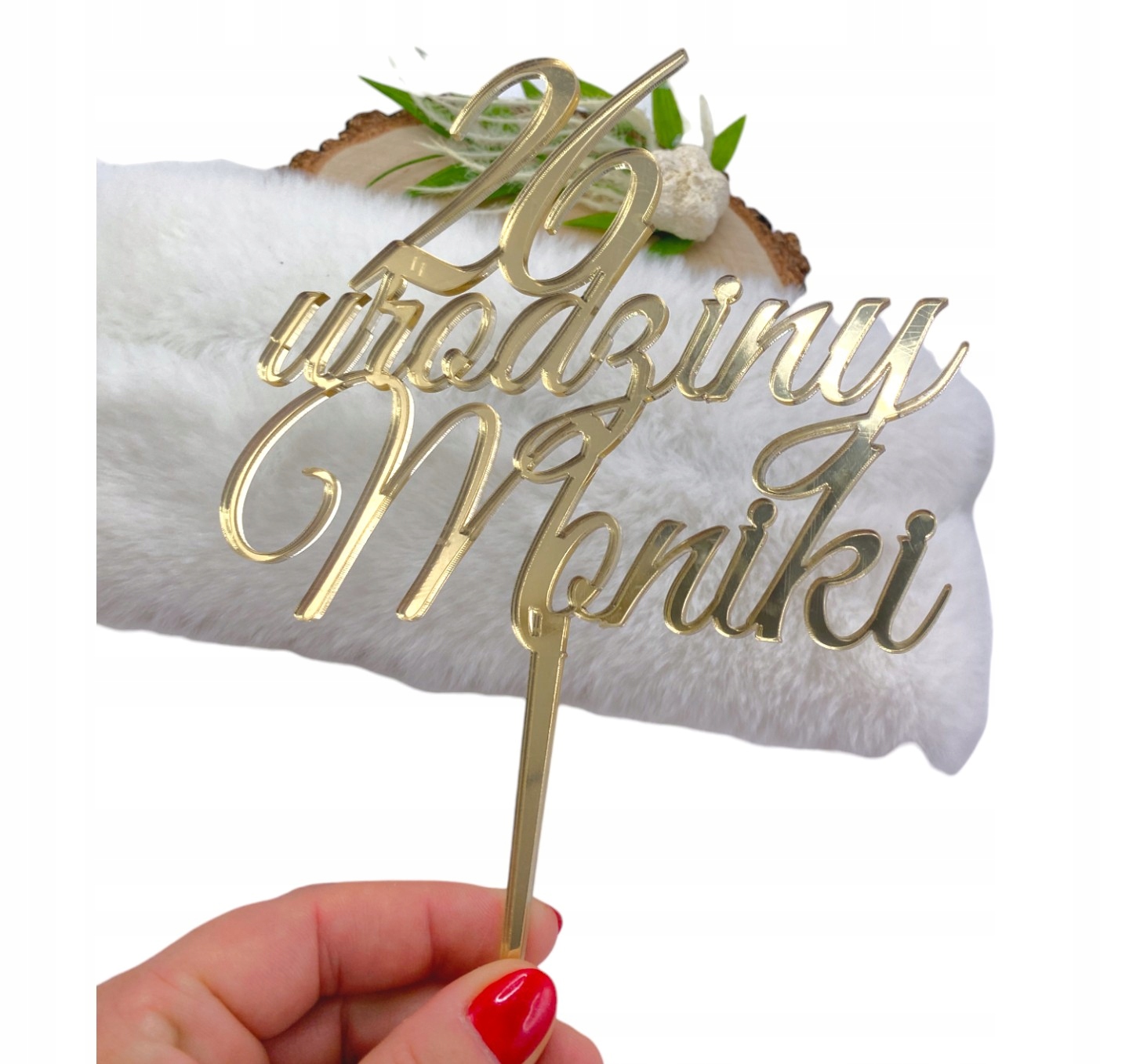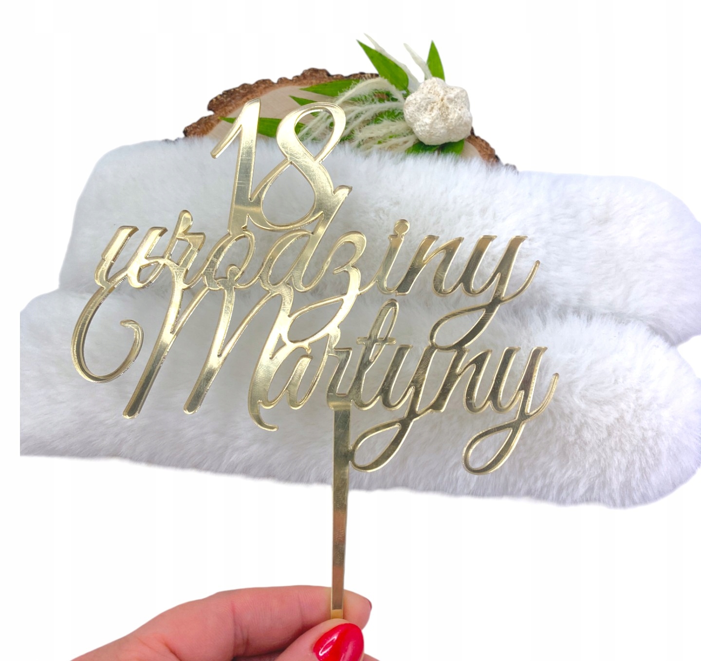 TOPPER NA TORT dekoracja złota plexi lustro URODZINY dowolna cyfra 14 18