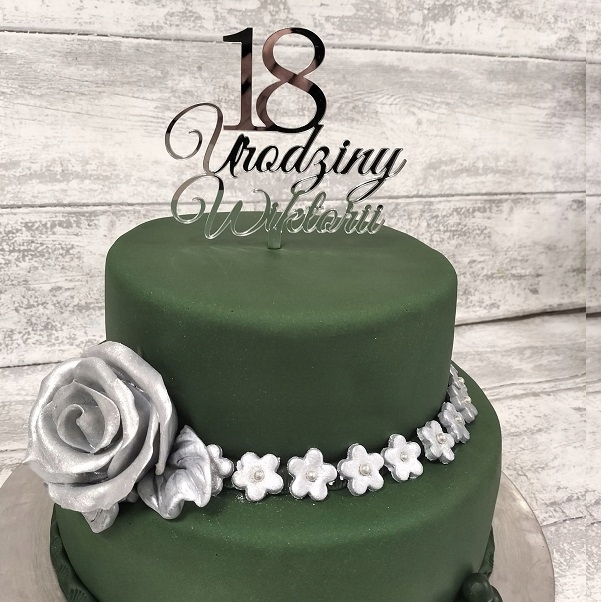 Topper srebrny na tort z imieniem na 18nastkę IMIĘ liczba 18 srebrne lustro