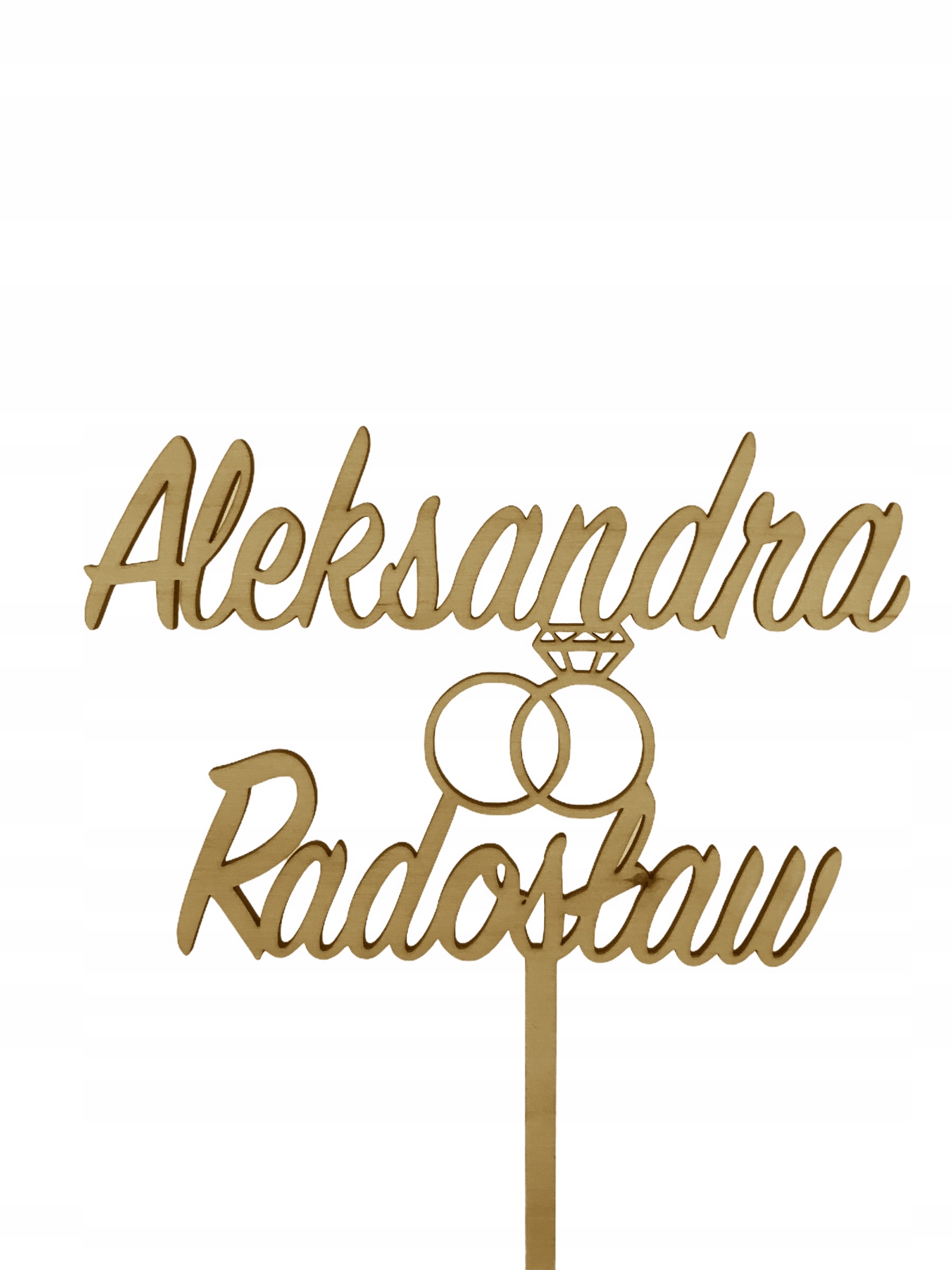 топпер изготовлен из натуральной фанеры с толщиной около 3 мм в золотом цветеНаши украшения также подходят для дальнейшего украшения (например, разрупкой). Служение имена , которые должны быть помещены на топпер, например, Александра Радослав