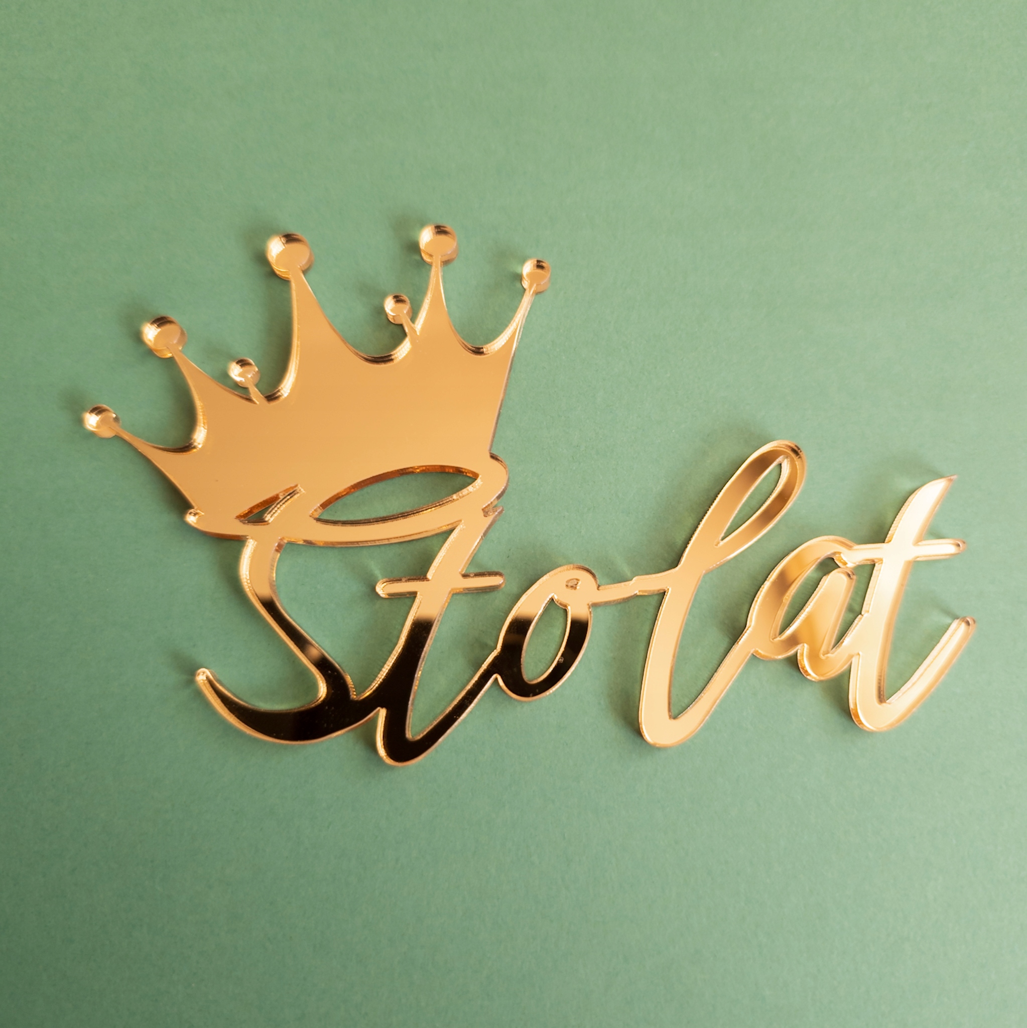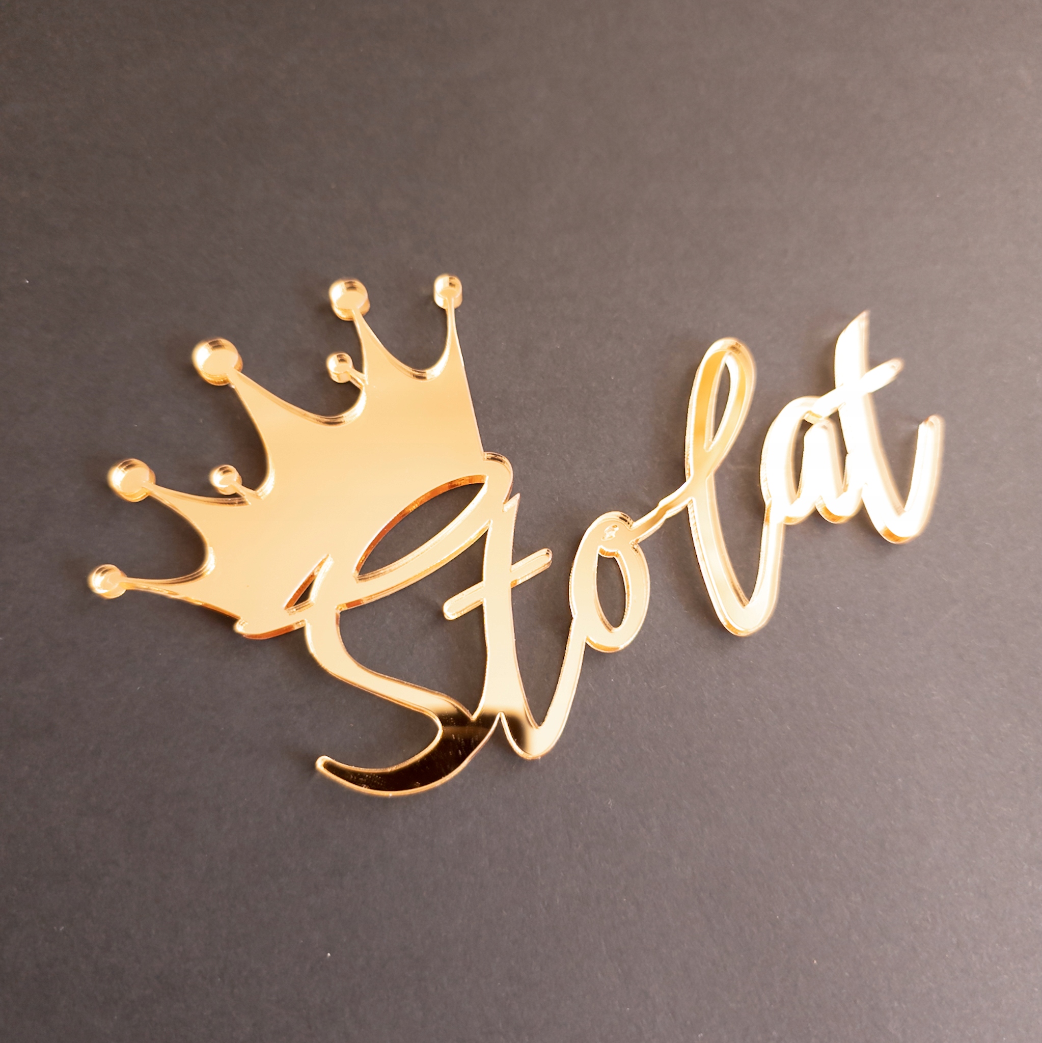 Топпер З днем народження + корона збоку, зверху золоте дзеркало